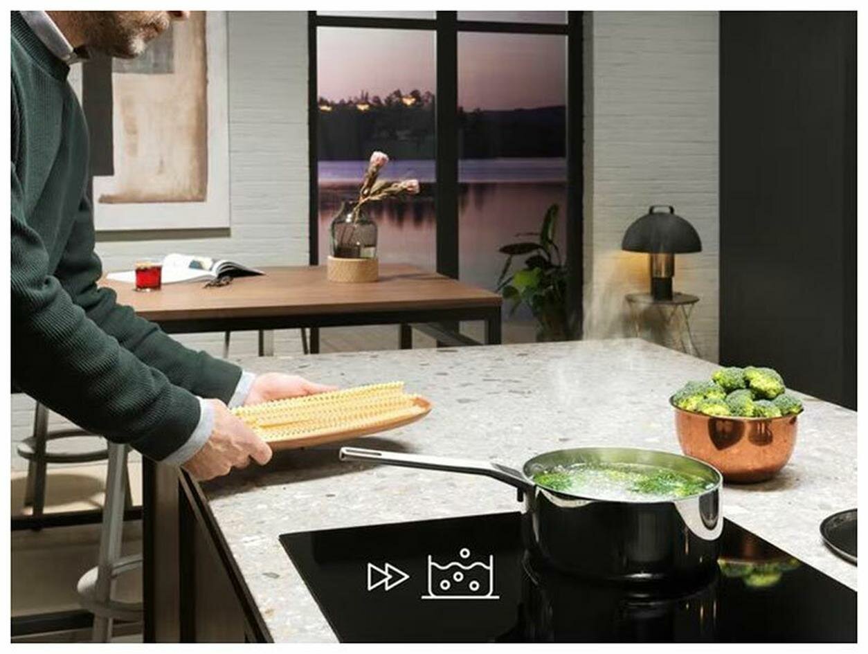 автоматика закипания, кратковременная пауза, наличие вытяжки, поддержание тепла, распознавание наличия посуды, распознавание размера посуды, таймер, функция Booster, booster, Быстрый нагрев, Индукционный мост, определение наличия посуды