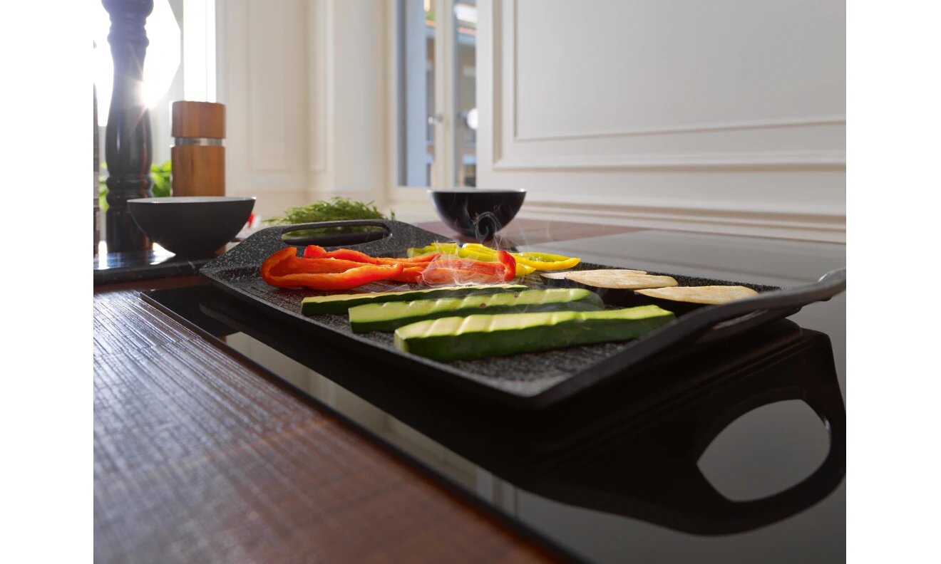 автоматика закипания, наличие вытяжки, поддержание тепла, распознавание наличия посуды, распознавание размера посуды, таймер, функция Booster, функция Flex Zone, функция ReStart, Быстрый нагрев, Индукционный мост, Расширение зоны нагрева, функция mokka для приготовление кофе, функция автоматики закипания, функция жарки на сковороде, функция медленное кипение, функция подогрева блюда, функция приготовления на гриле