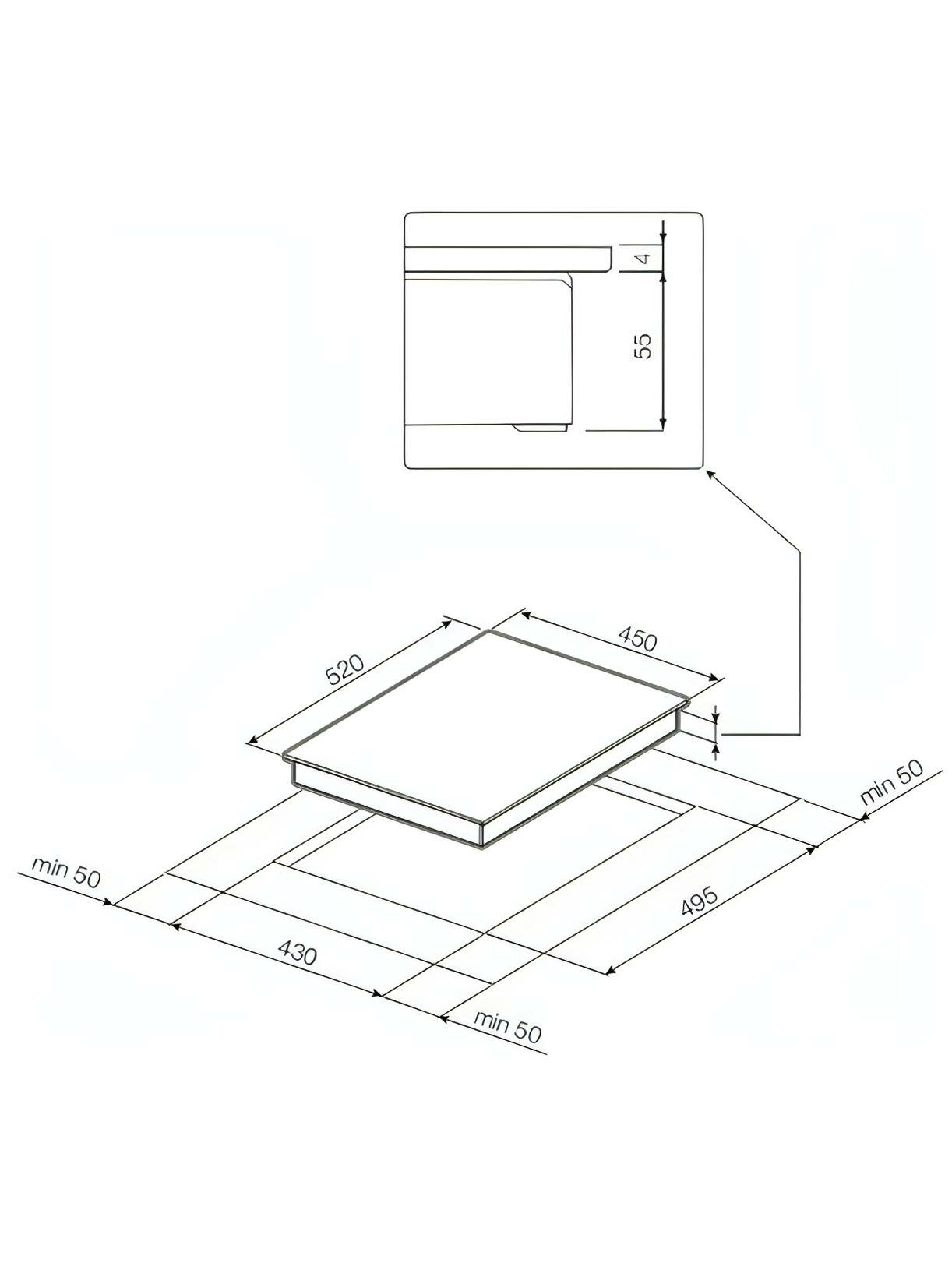цифровой дисплей; индикация включения; защита от детей, защита от случайного включения; аварийное отключение конфорок, автоматическое выключение, индикация остаточного тепла, индикация выбранной мощности; главный выключатель