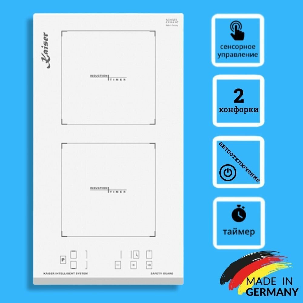 Индукционная модель Kaiser KCT 3726 FIW Avantgarde подходит для небольших кухонь. Особенность серии Domino: плитки можно соединять вместе. Поэтому, если вы хотите расширить зону готовки, просто купите такой же прибор. Управление осуществляется с помощью сенсорных переключателей.