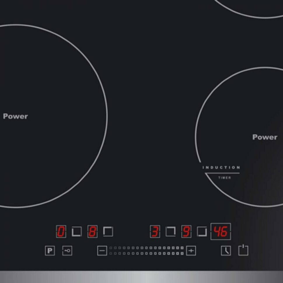 распознавание наличия посуды, распознавание размера посуды, таймер, функция Booster, Быстрый нагрев, Индукционный мост, автоотключение, блокировка, индикатор остат. тепла, регул. мощности
