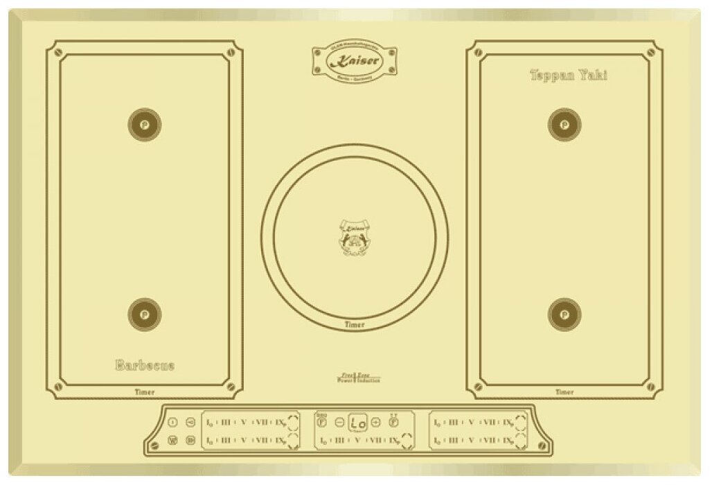 Kaiser KCT 7797 FI независимая индукционная варочная панель ElfEm - модель цвета слоновой кости с дизайном в стиле ампир. Устройство легко встраивается в столешницу из любого материала.