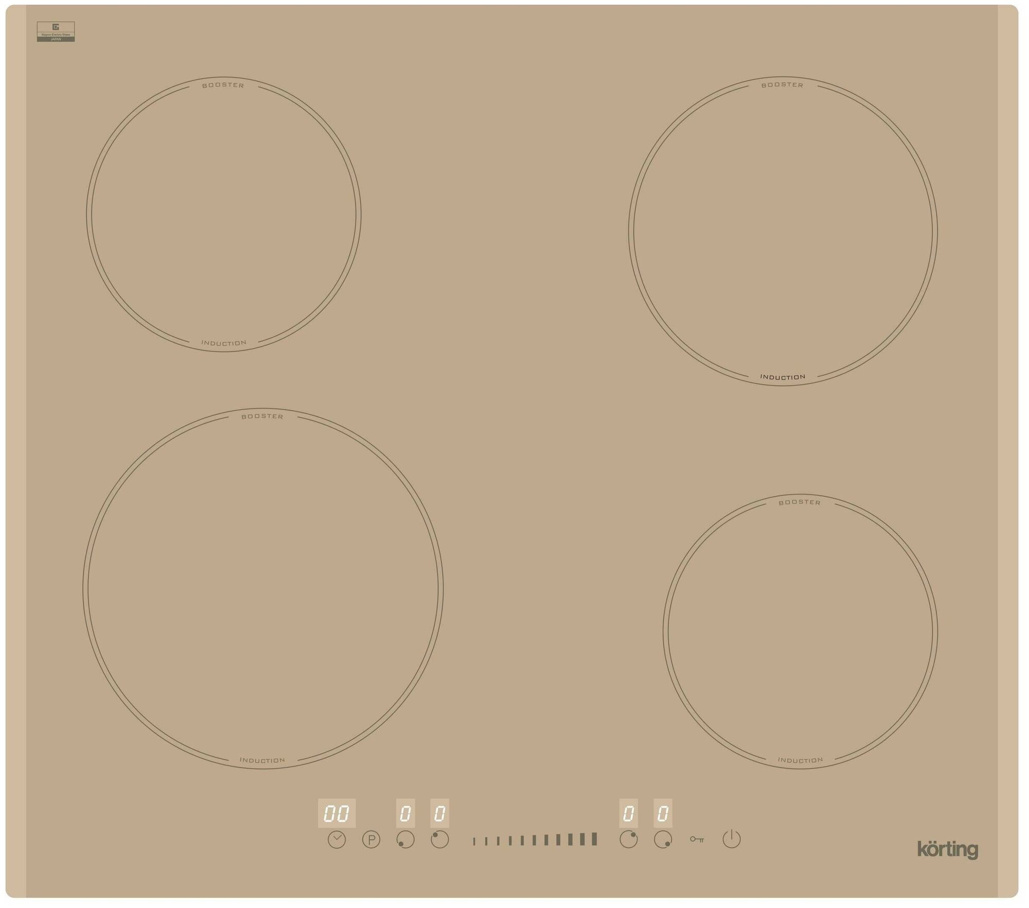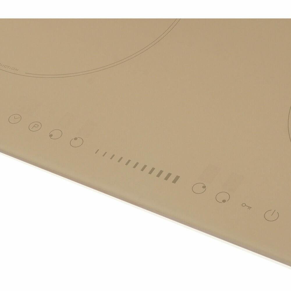 Дизайн рамки: Cкошенные боковые края, Материал поверхности: Стеклокерамика, Цвет: Шампань, Управление: Сенсорное слайдерное, Блокировка управления, Дисплей: Для каждой зоны нагрева, Таймер, Автоматическое отключение, Индикация остаточного тепла, Функция Booster: 4 зоны, Функция Super Booster, Уровней мощности: 9, Размеры встраивания (ВхШхГ) (мм): 30x560х490