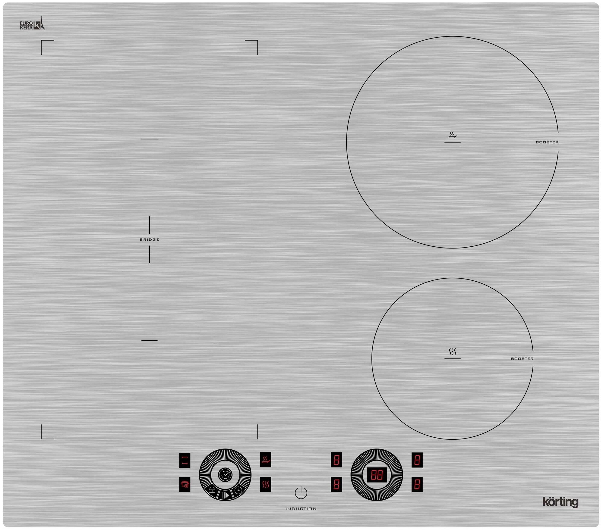 кратковременная пауза, поддержание тепла, распознавание наличия посуды, таймер, функция Booster, функция Bridge, функция ReStart, Быстрый нагрев, Индукционный мост, Расширение зоны нагрева, кратковременная пауза, таймер