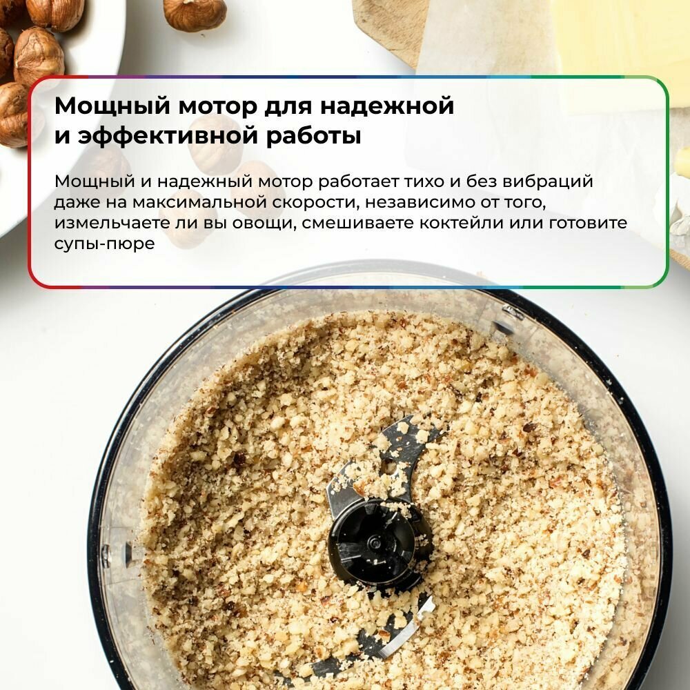 защитная крышка на чашу, прорезиненные ножки, Отсек для шнура, Отсек для шнура, Съемный резак, Съемный резак