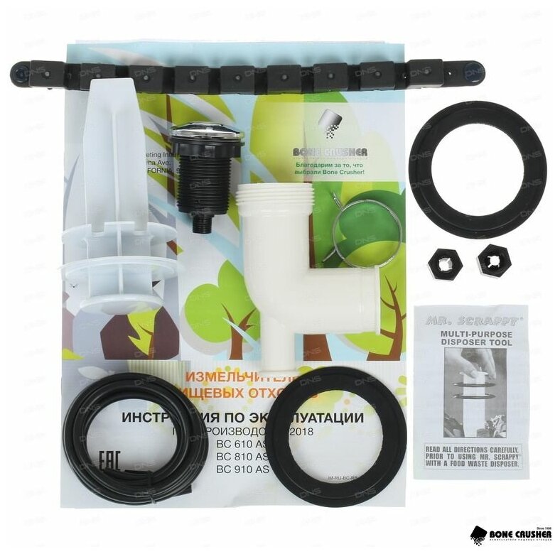 Mr. Scrappy - многофункциональный инструмент, разработанный концерном AMI для безопасного проталкивания пищевых отходов в камеру прибора, пробка для набора воды в раковину, блокировка для попадания посторонних предметов в камеру прибора. Имеет 2 уровня фиксации.