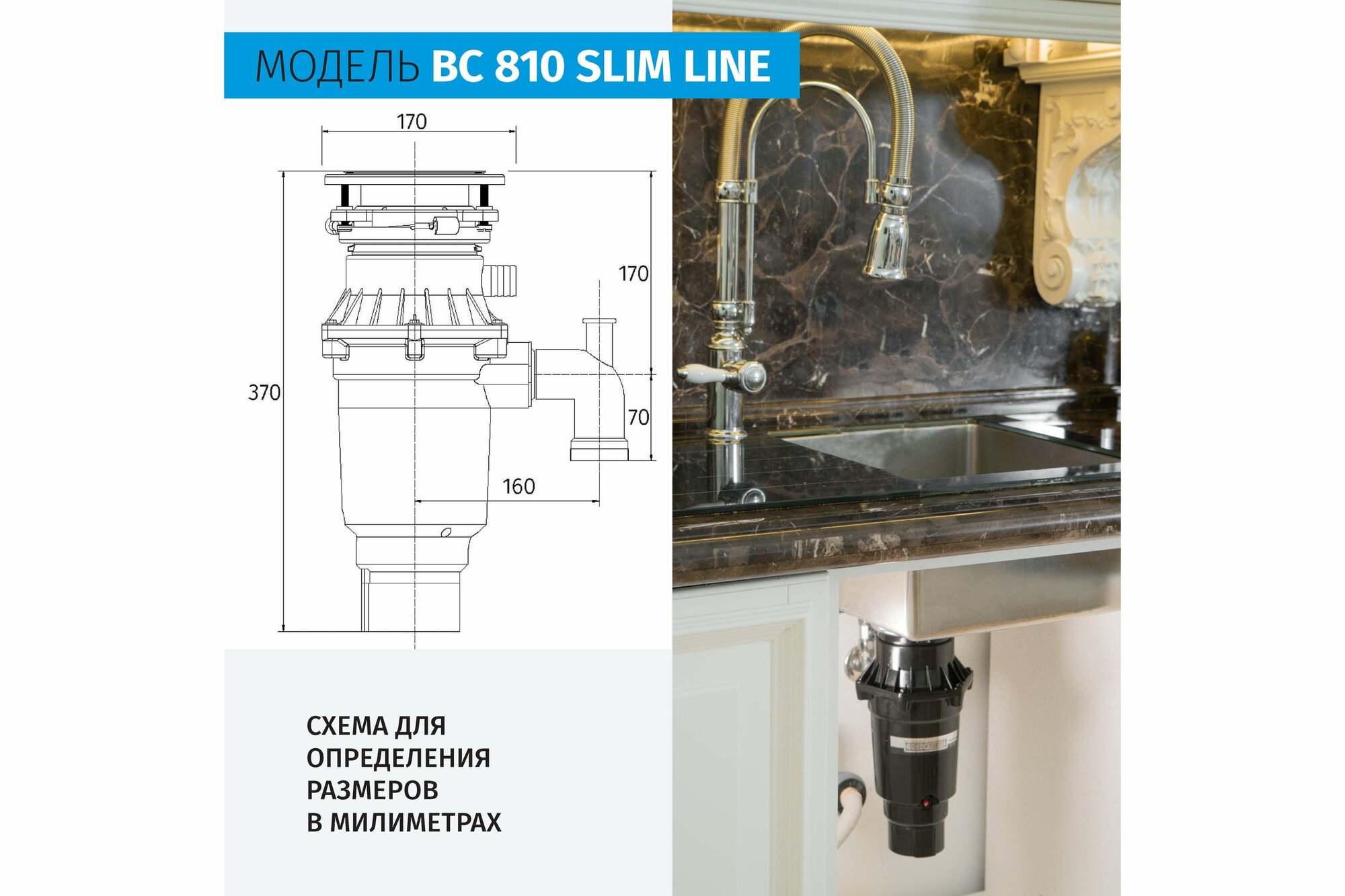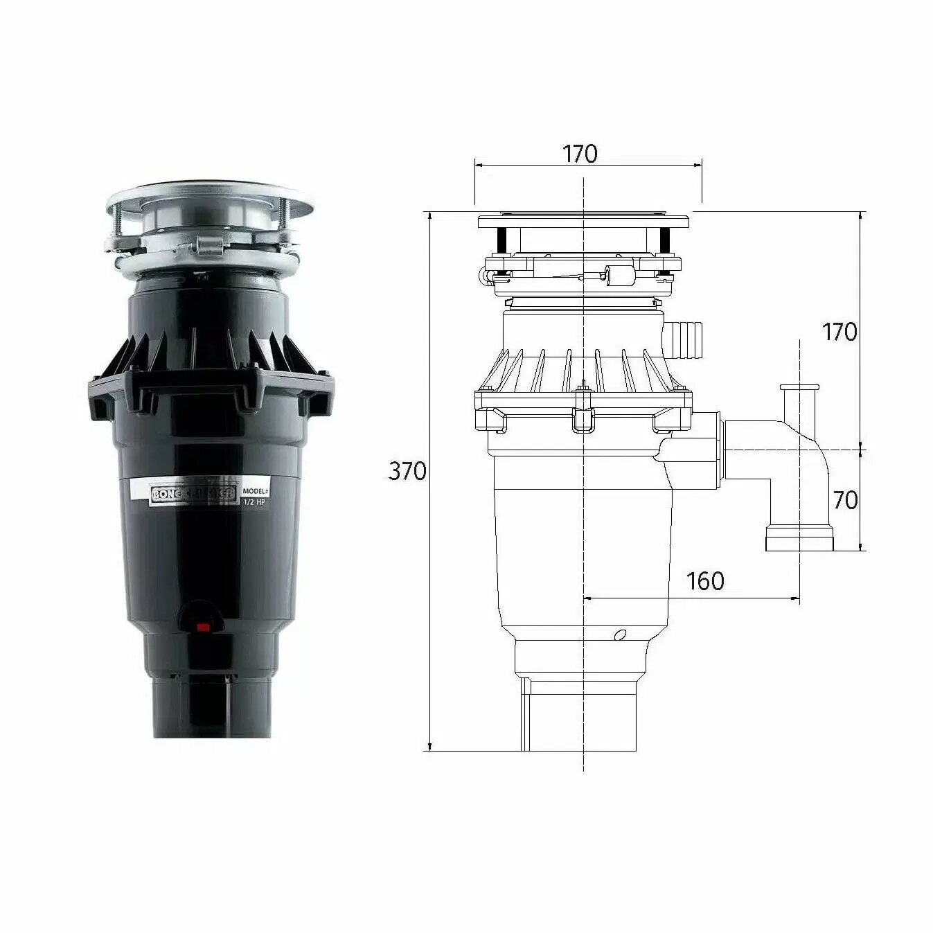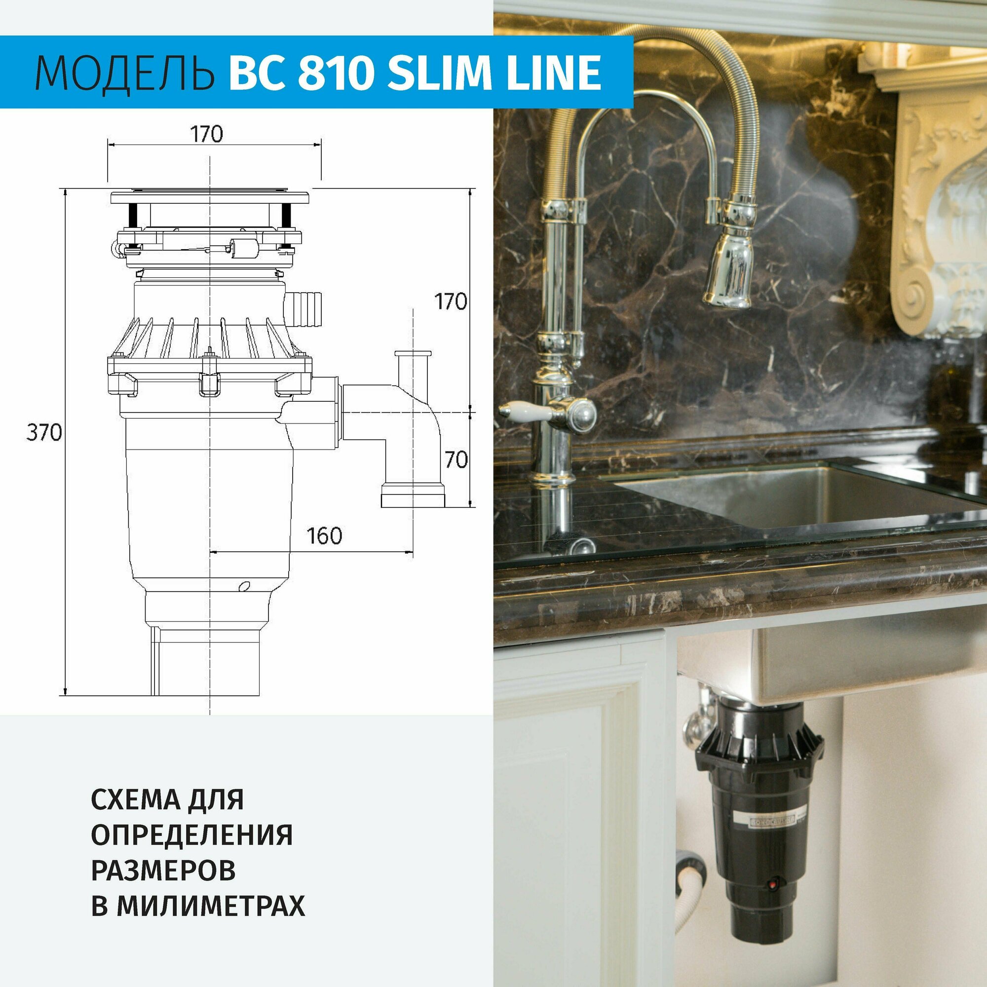 Измельчитель пищевых отходов Bone Crusher ВС810-SL Slim Line + Магнитный улавливатель