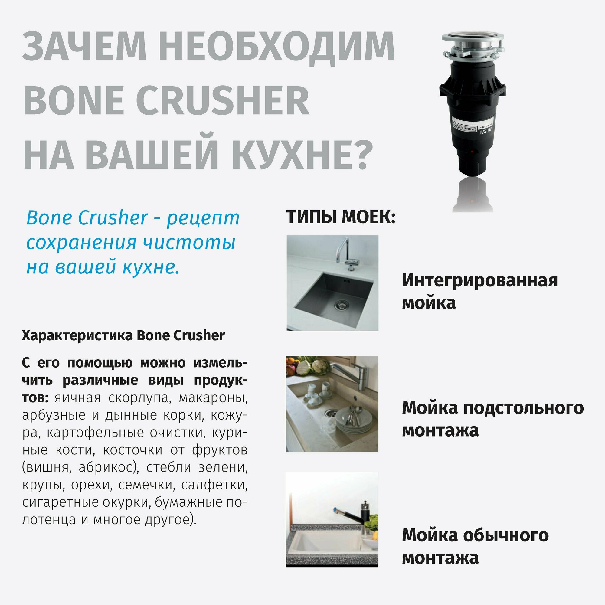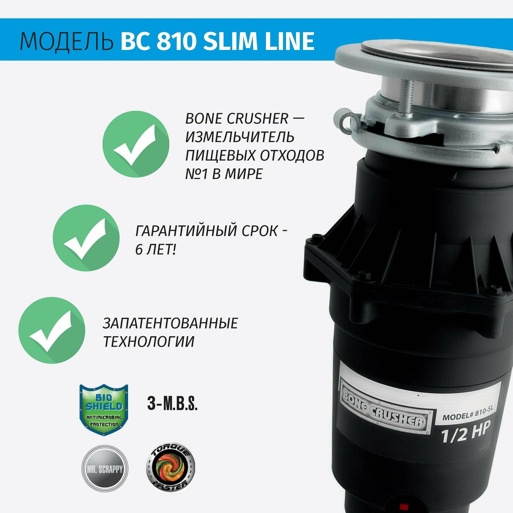 Отзывы о Измельчитель пищевых отходов Bone Crusher ВС810-SL Slim Line + Магнитный улавливатель