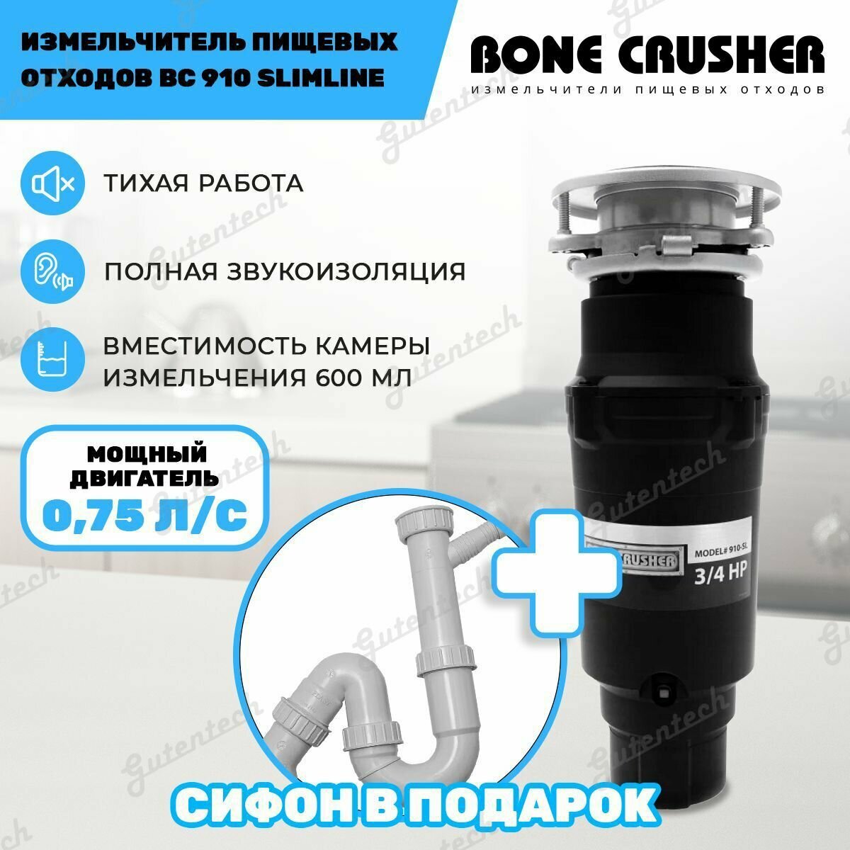 Отзывы о Измельчитель пищевых отходов Bone Crusher ВС 910 AS-Slim Line +установочный комплект