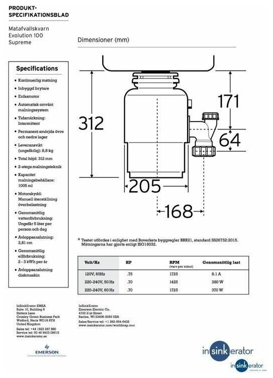 Измельчитель пищевых отходов IN SINK ERATOR ISE Evolution 100 Supreme