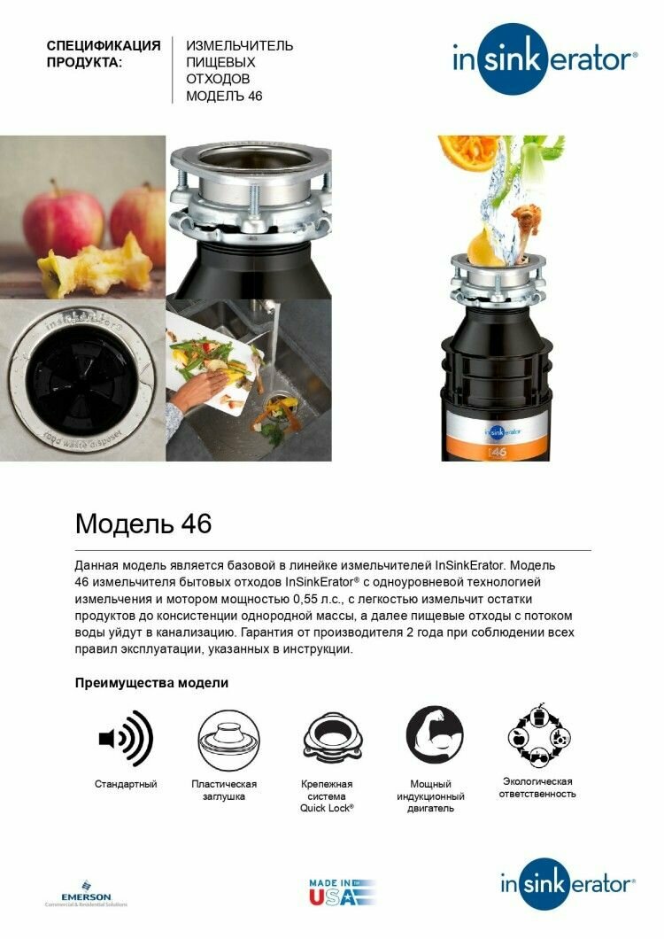 Измельчитель пищевых отходов IN SINK ERATOR M 46-2