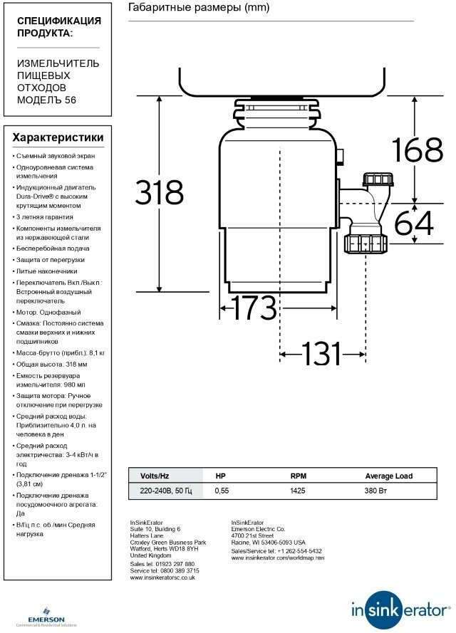 Измельчитель пищевых отходов IN SINK ERATOR M 56-2