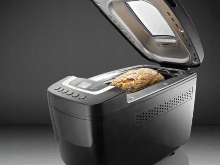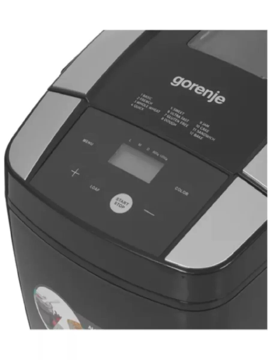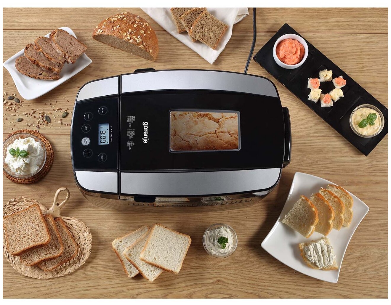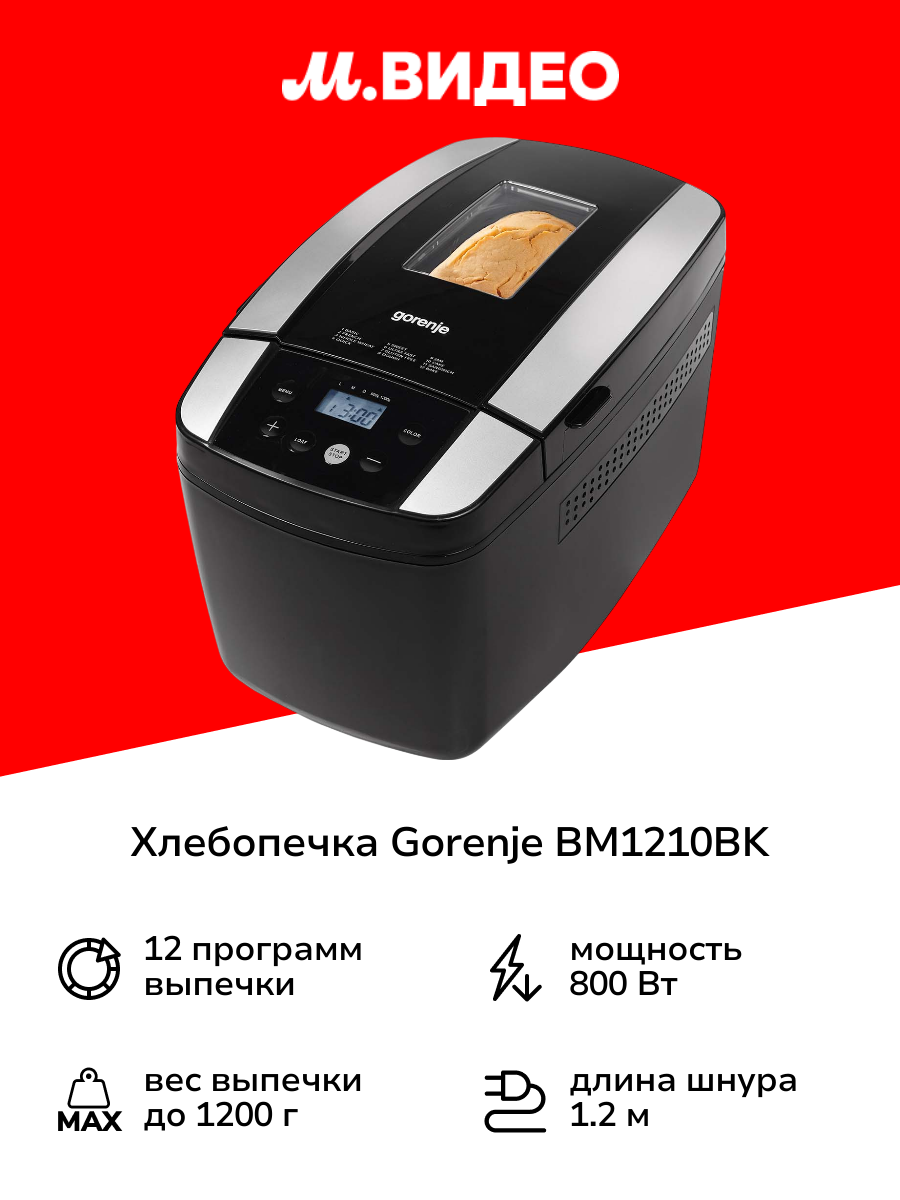 Поддержание температуры после выпекания; Индикация включениявремени приготовления; Дисплей; Прорезиненные ножки; Окно контроля процесса; Звуковой сигнал; Сохранение программы при сбое электропитания; Отсек для сетевого шнура; Программы хлебопечения: безглютеновый хлеб/бородинский хлеб/ржаной хлеб/багет; Программы приготовления: варенье/кекс/подогрев/тесто; Дополнительно в комплекте: книга рецептов, мерный стакан, мерная ложка