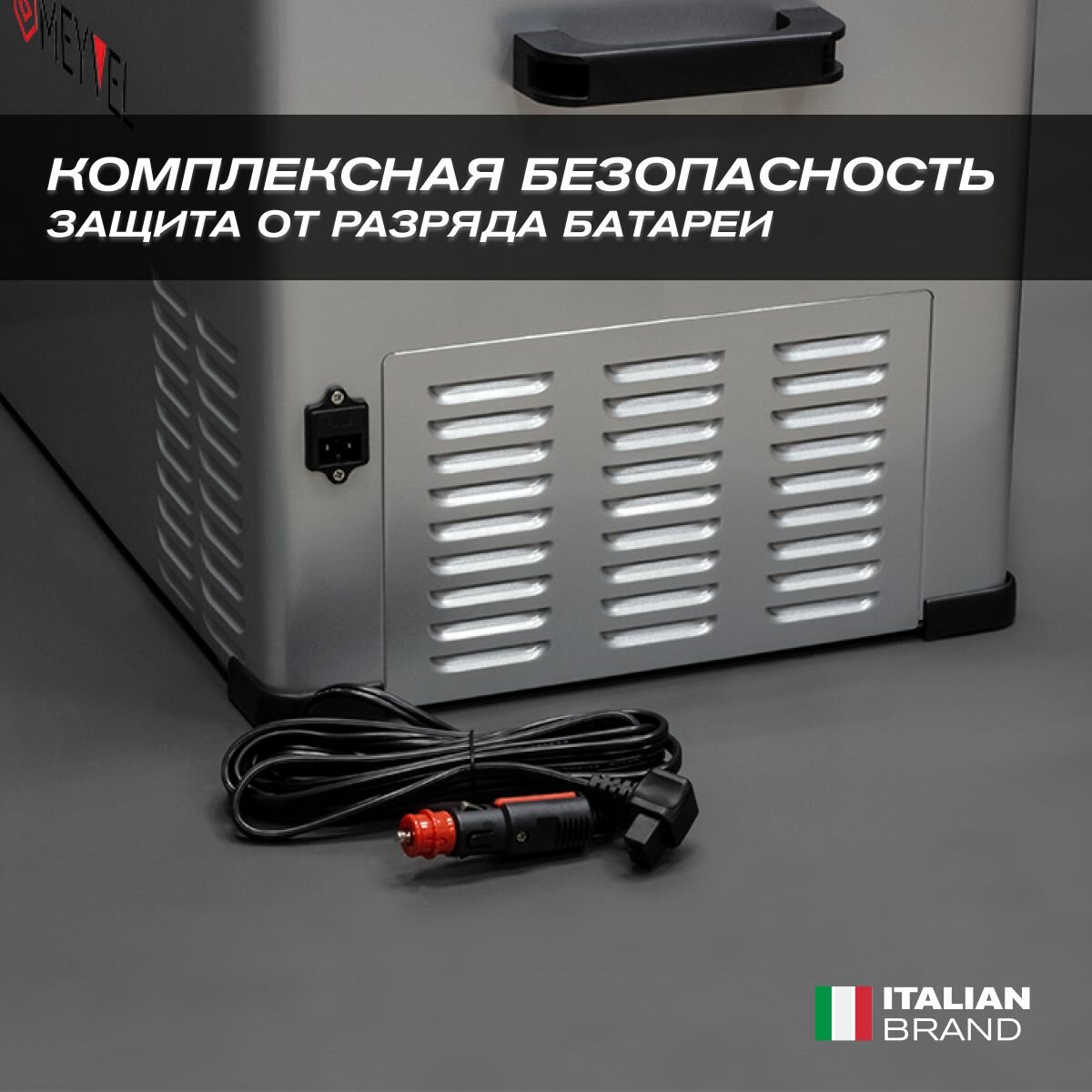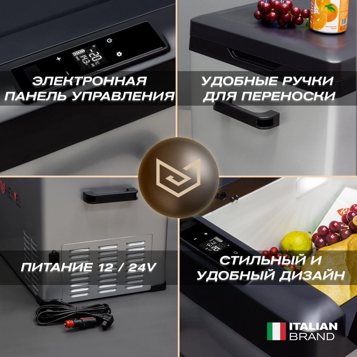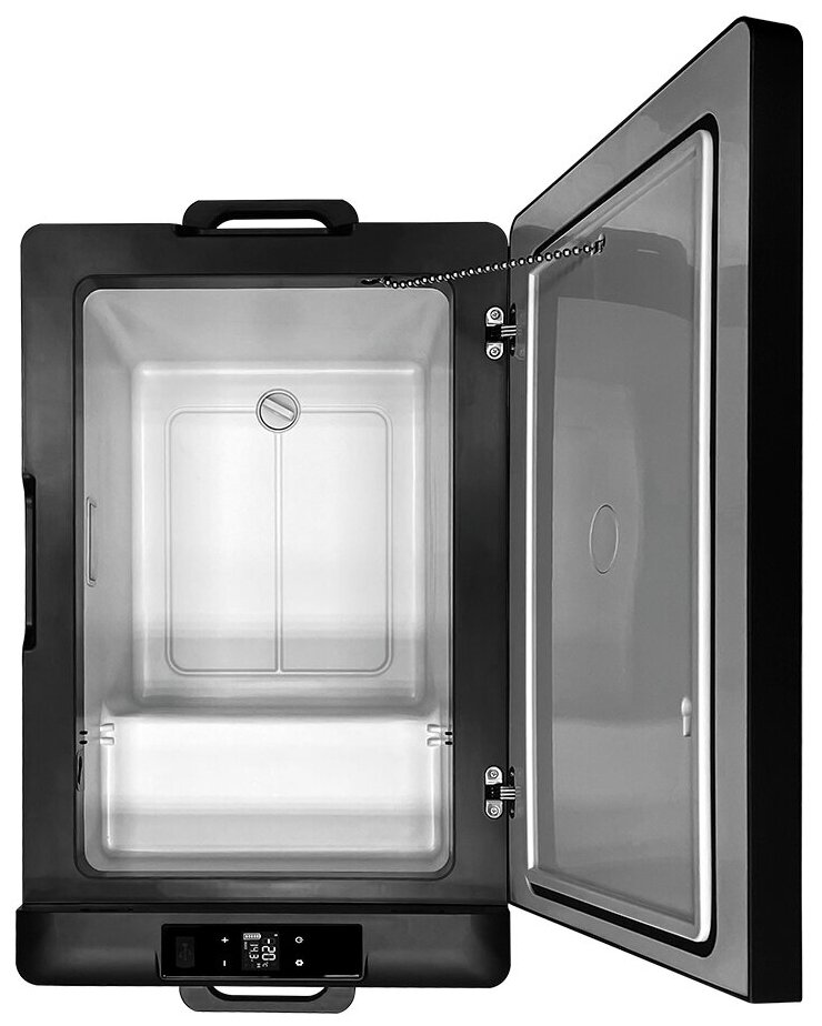 угол наклона компрессора до 40°; USB-порт; система защиты от разряда аккумулятора; защита компрессора от перегрева; возможность подключения через прикуриватель Автоконтроль температуры.