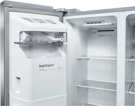 Multi-Airflow-System Multi-Airflow-System Система многопоточного воздушного охлаждения позволяет равномерно понижать и поддерживать температуру во всех камерах холодильника. Несколько струй охлажденного воздуха направленно подаются по разным траекториям, поэтому климат изменяется равномерно. Вы можете точнее регулировать также влажность в холодильнике.