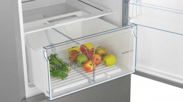 1 подвесная полка на 2 бутылки, Лоток для льда с крышкой, Количество подставок для яиц: 3, Отделение для молочных продуктов, 4 выдвижные полки