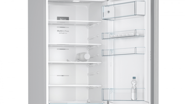 1 подвесная полка на 2 бутылки, 4 выдвижные стеклянные полки, Одна выдвижная стеклянная полка, Количество подставок для яиц: 3, Отделение для молочных продуктов