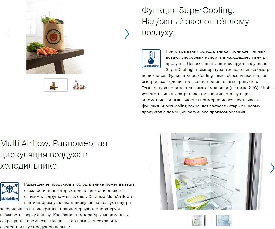 датчики FreshSense, система MultiAirflow, система идеального расположения PerfectFit, система EasyAccess