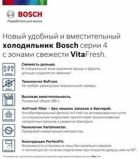 датчики FreshSense, система MultiAirflow, система идеального расположения PerfectFit, система крепления полок EasyAccess, два контура охлаждения