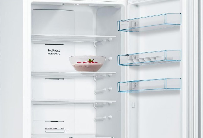 Multi-Airflow-System Multi-Airflow-System Система многопоточного воздушного охлаждения позволяет равномерно понижать и поддерживать температуру во всех камерах холодильника. Несколько струй охлажденного воздуха направленно подаются по разным траекториям, поэтому климат изменяется равномерно. Вы можете точнее регулировать также влажность в холодильнике.