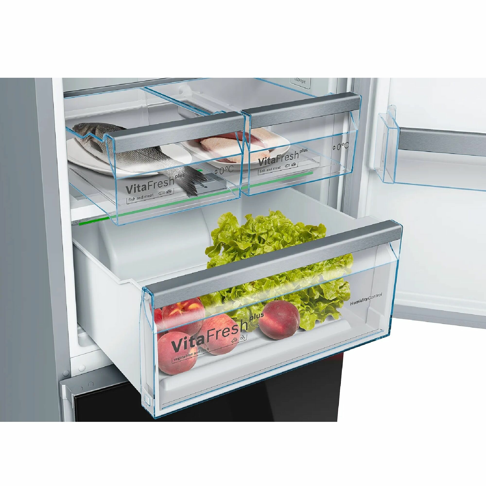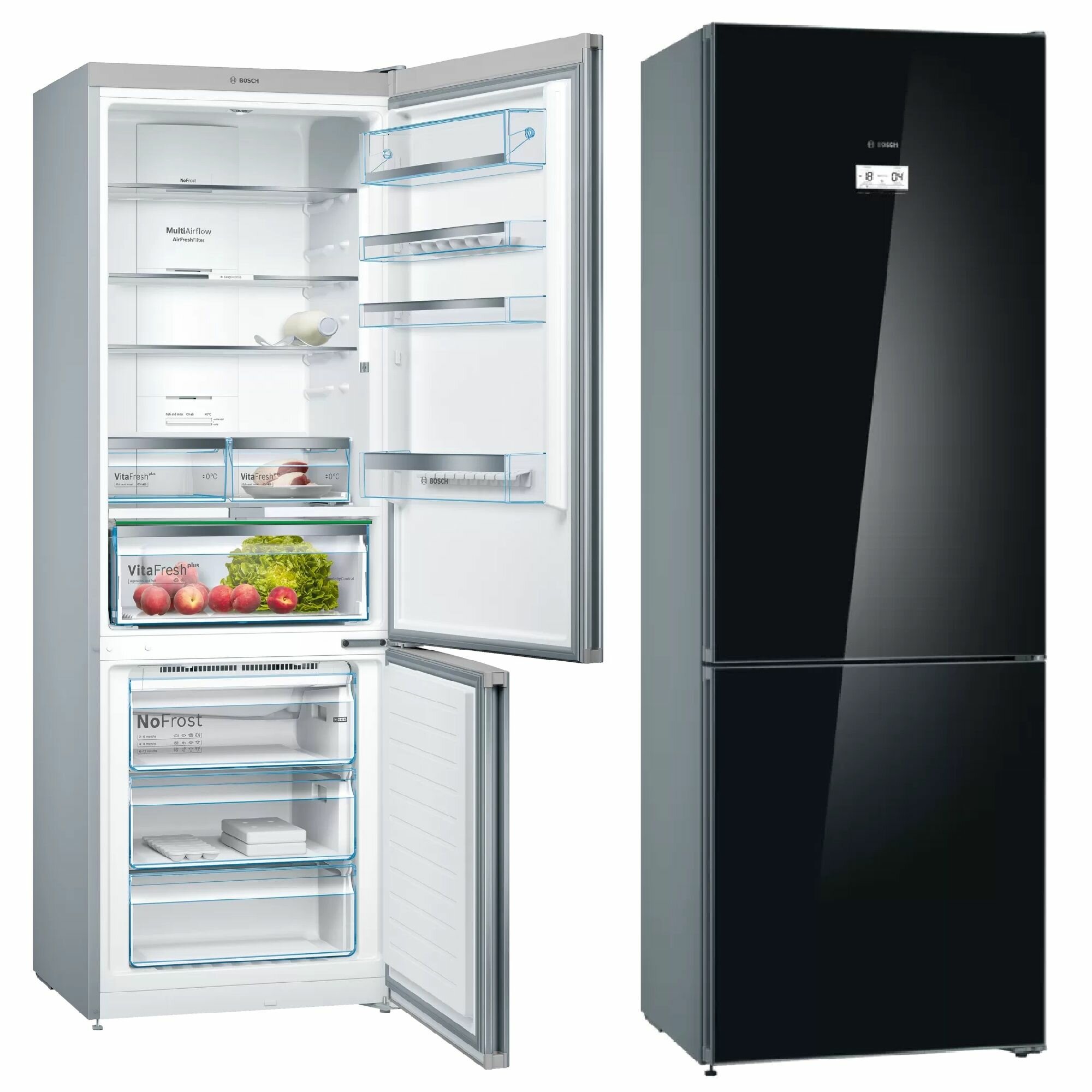 защита от детей, индикация температуры, система контроля влажности, 2 контура охлаждения, Full No Frost, Возможность установки вплотную к стене, Дизайнерское оформление, Дисплей, Зона свежести, Календарь хранения продуктов, Легкое изменение положения полок VarioZone, Светодиодная подсветка, Скрытые ручки, Суперзаморозка, Суперохлаждение, Тип зоны свежести: VitaFresh plus, режим отпуска., суперохлаждение