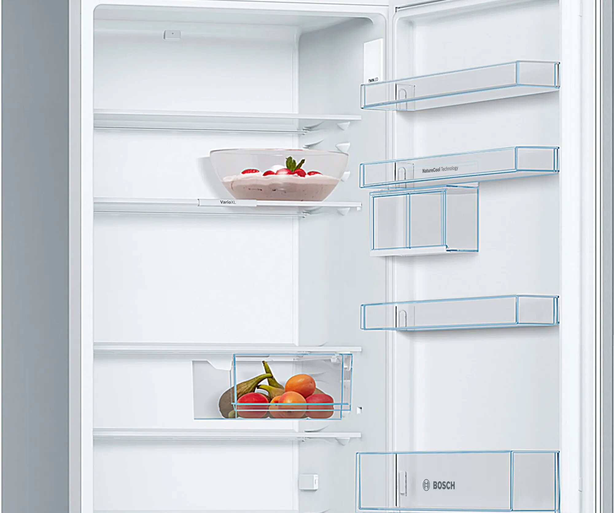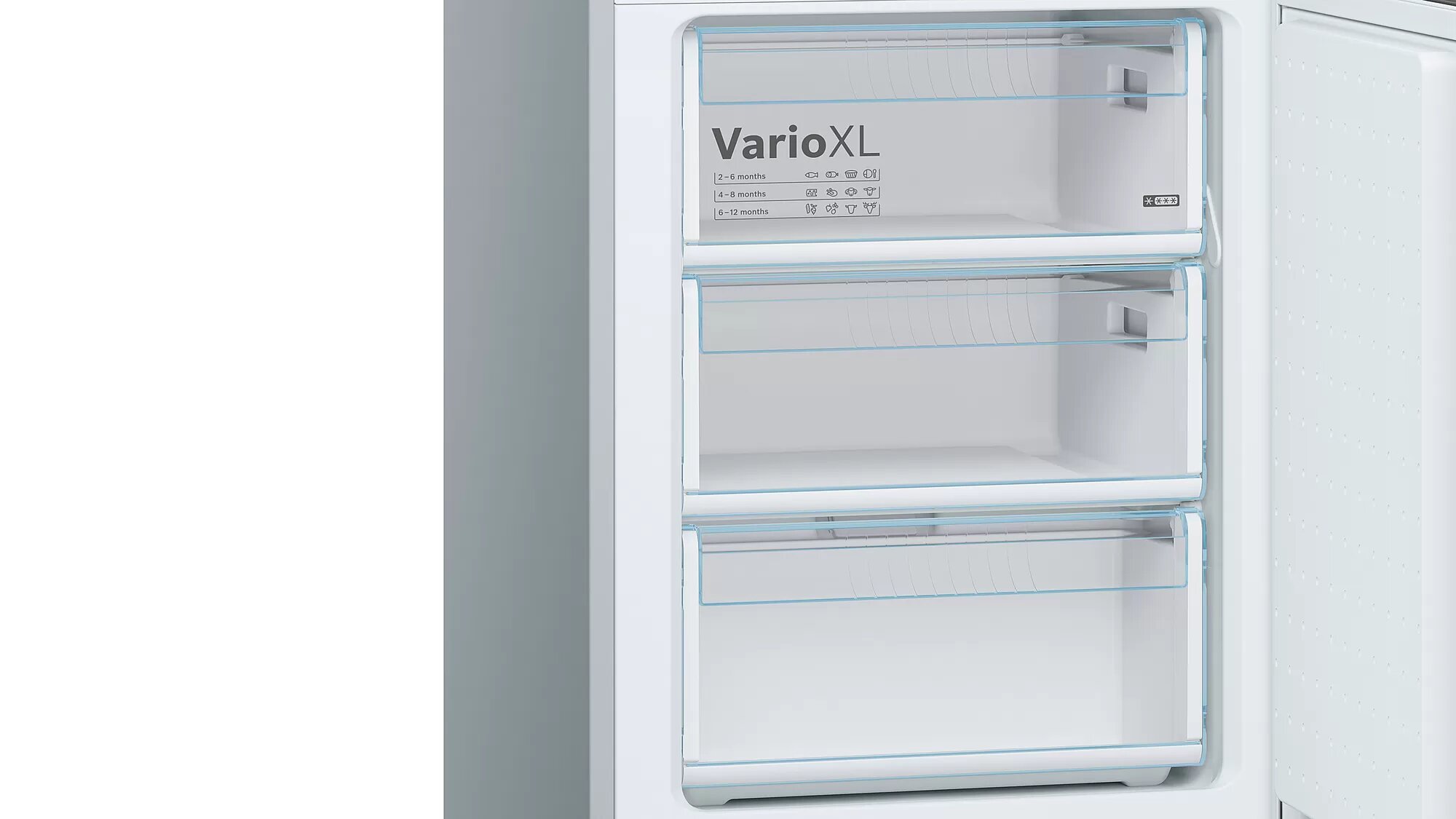 холодильное отделение: 1 ящик VitaFresh с контролем влажности - фрукты и овощи сохраняют витамины и дольше остаются свежими, 4 из 5 полки, переставляемые по высоте, 4 дверных полки, лоток для яиц; морозильное отделение: 2 подставки для яиц, 2 ванночки для льда; регулируемые по высоте - ножки спереди, ролики сзади
