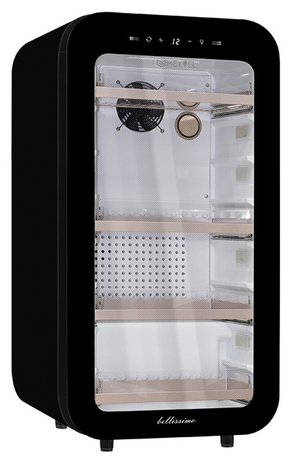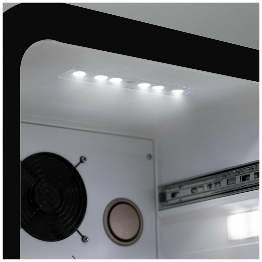 Тройное стекло с УФ-фильтром; 4 выкатные полки; Панорамное освещение; Автоматическая разморозка
