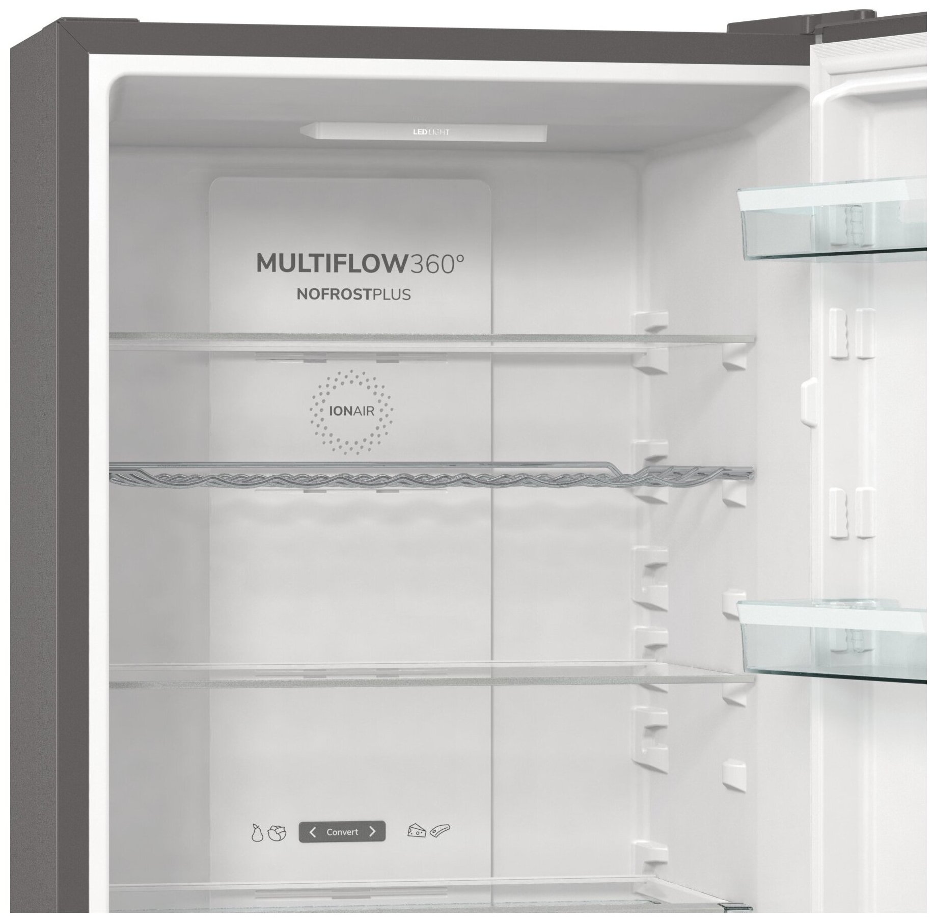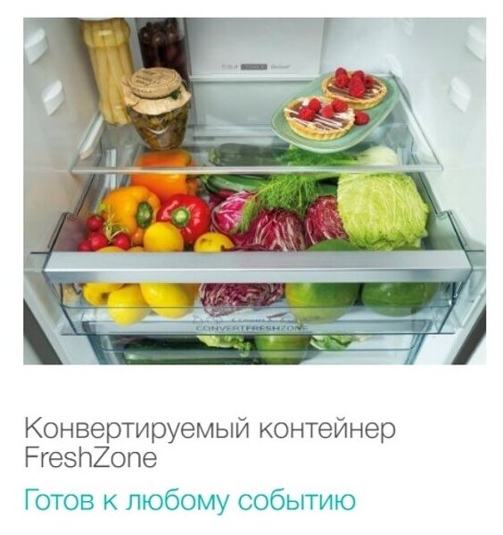 индикация температуры, система контроля влажности, Full No Frost, Дисплей, Зона свежести, Ионизатор, Светодиодная подсветка, Суперзаморозка, Суперохлаждение