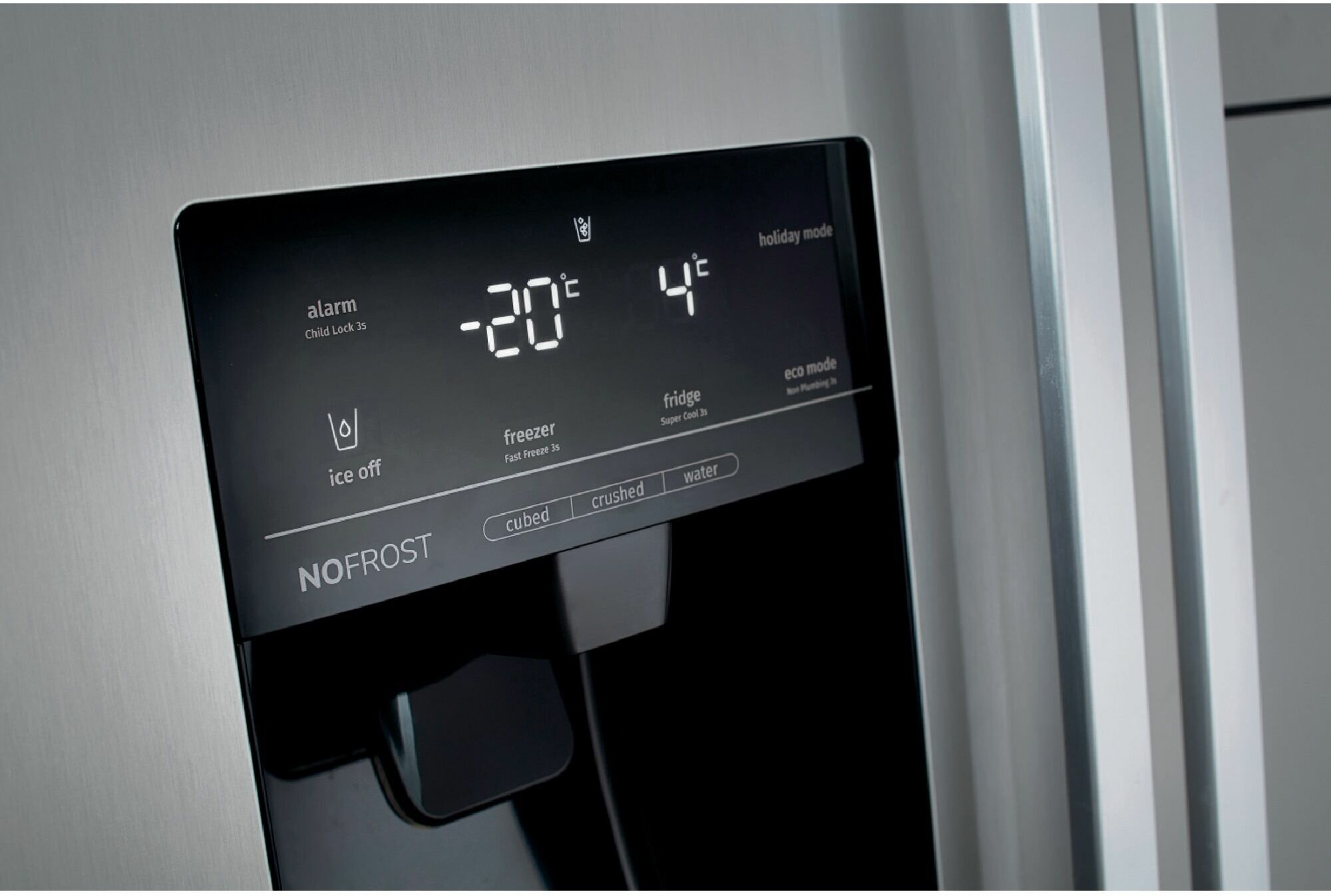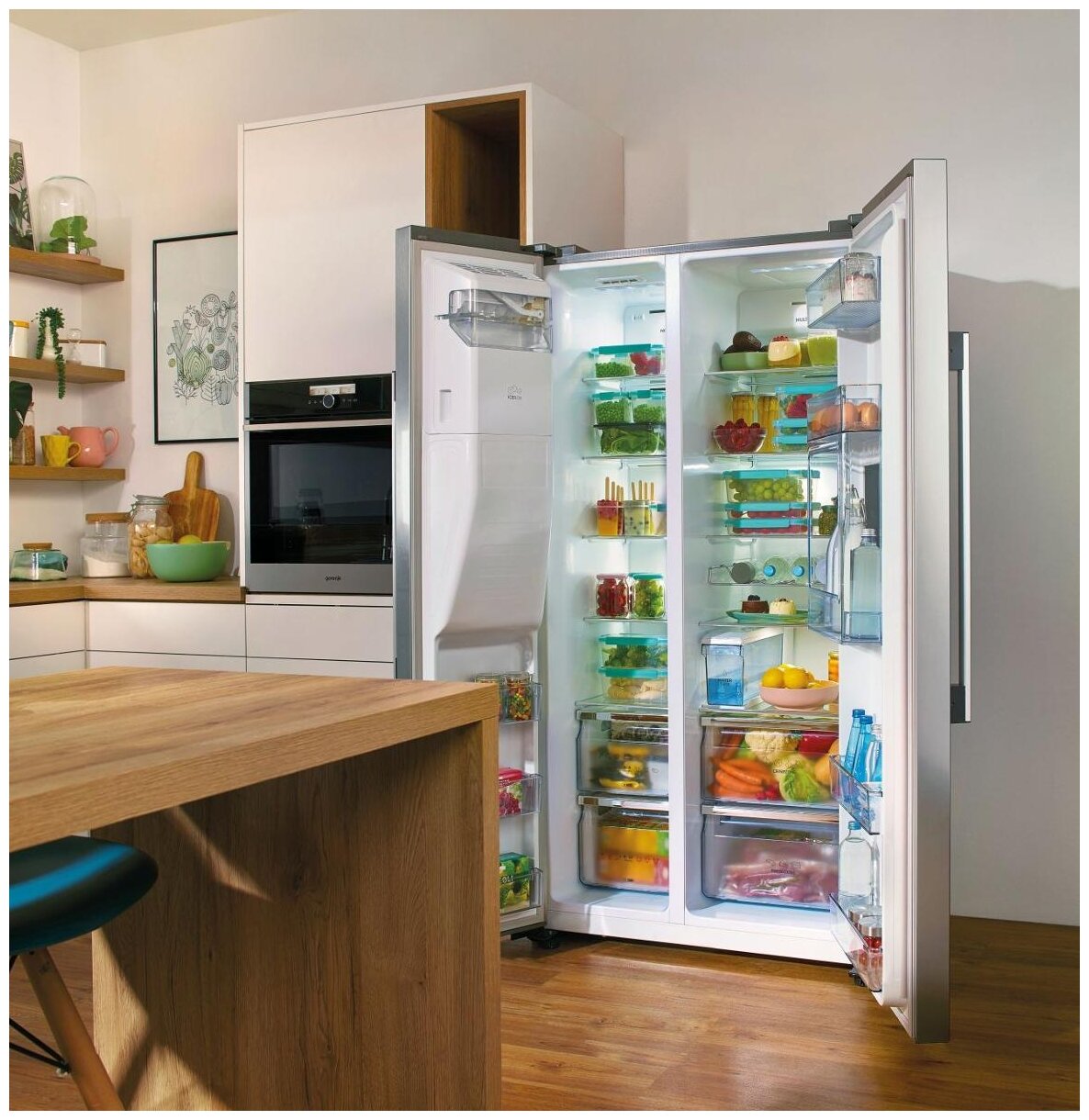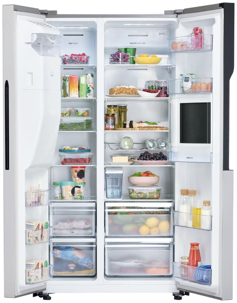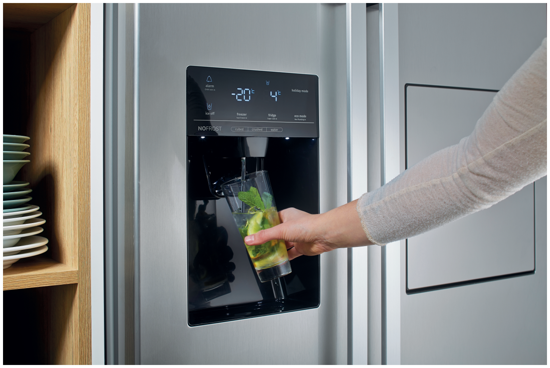 Система подачи холодной воды; Освещение холодильной камеры; Режим "Легкая заморозка"; Льдогенератор; Мини-бар; Режим энергосбережения; Охлаждение напитков; Светодиодное освещение морозильной камеры; Внешняя ручка; Подключение к водопроводу; Полка для бутылок; Колесики для перемещения; Фиксация полок против выдвижения; Дополнительно в комплекте: подставка для яиц