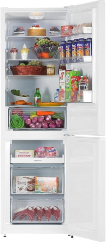 2 фиксированные + 2 регулируемые ножки; 1 дверная полка для бутылок без фиксатора, 2 дверные полки; лоток для яиц 1x8; полочка для заморозки