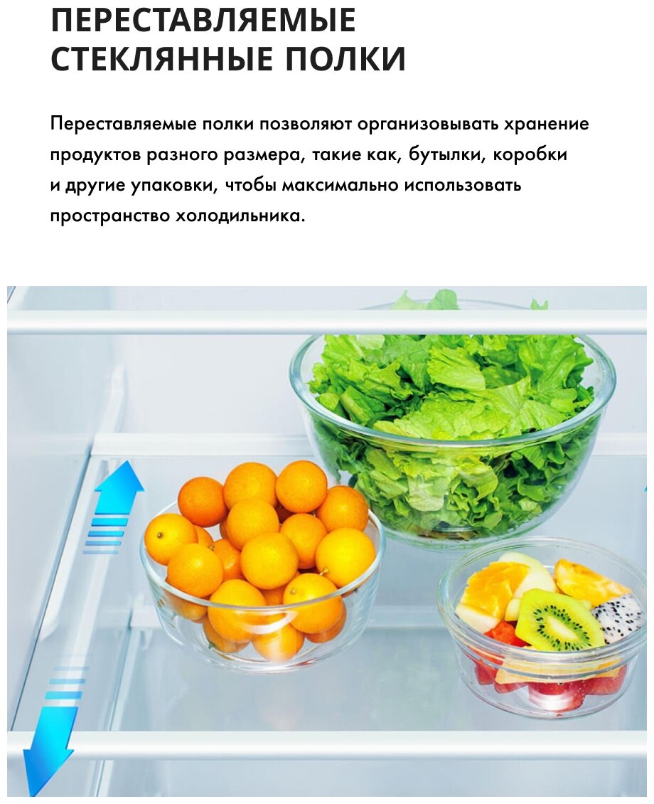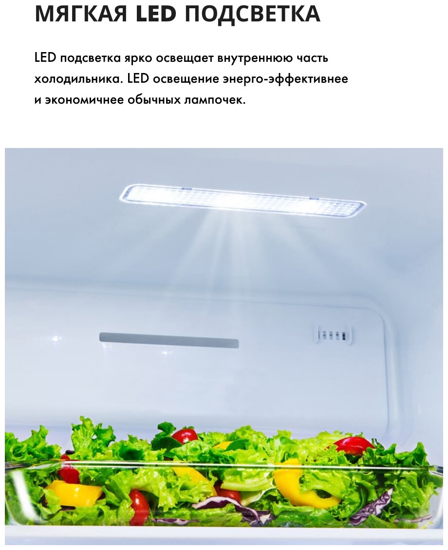 система контроля влажности, Зона свежести, Ручки легкого открывания, Светодиодная подсветка, Скрытые ручки, Суперохлаждение