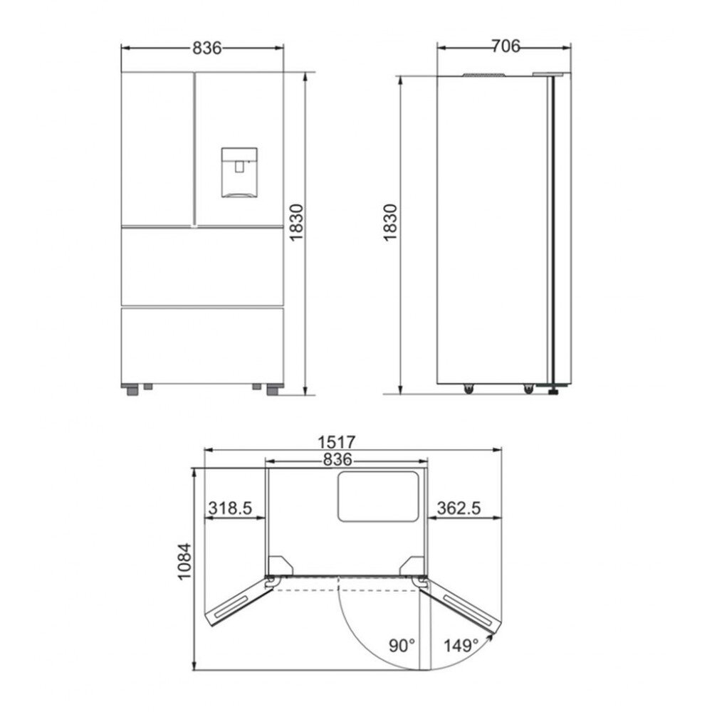 French Door, антибактериальное покрытие, дисплей, В стороны, Влево, Вправо, Выдвижное, ЖК дисплей, Светодиодная подсветка, льдогенератор