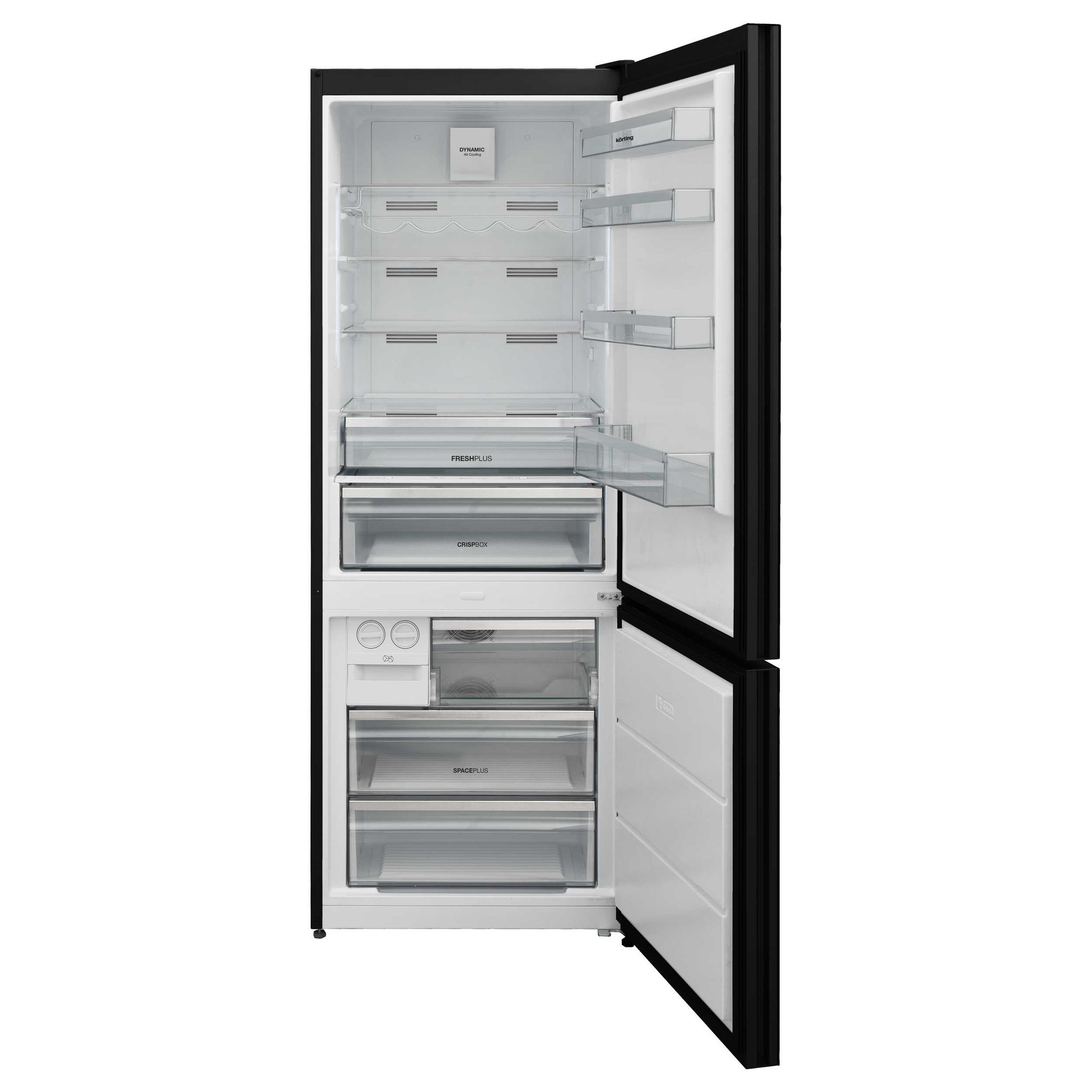 Зона сохранения свежести FreshPlus, Большой ящик для овощей CrispBox с регулировкой влажности, Складывающаяся стеклянная полка, Увеличенный ящик SpacePlus в морозильном отделении, Отсек для приготовления льда Ice Matic