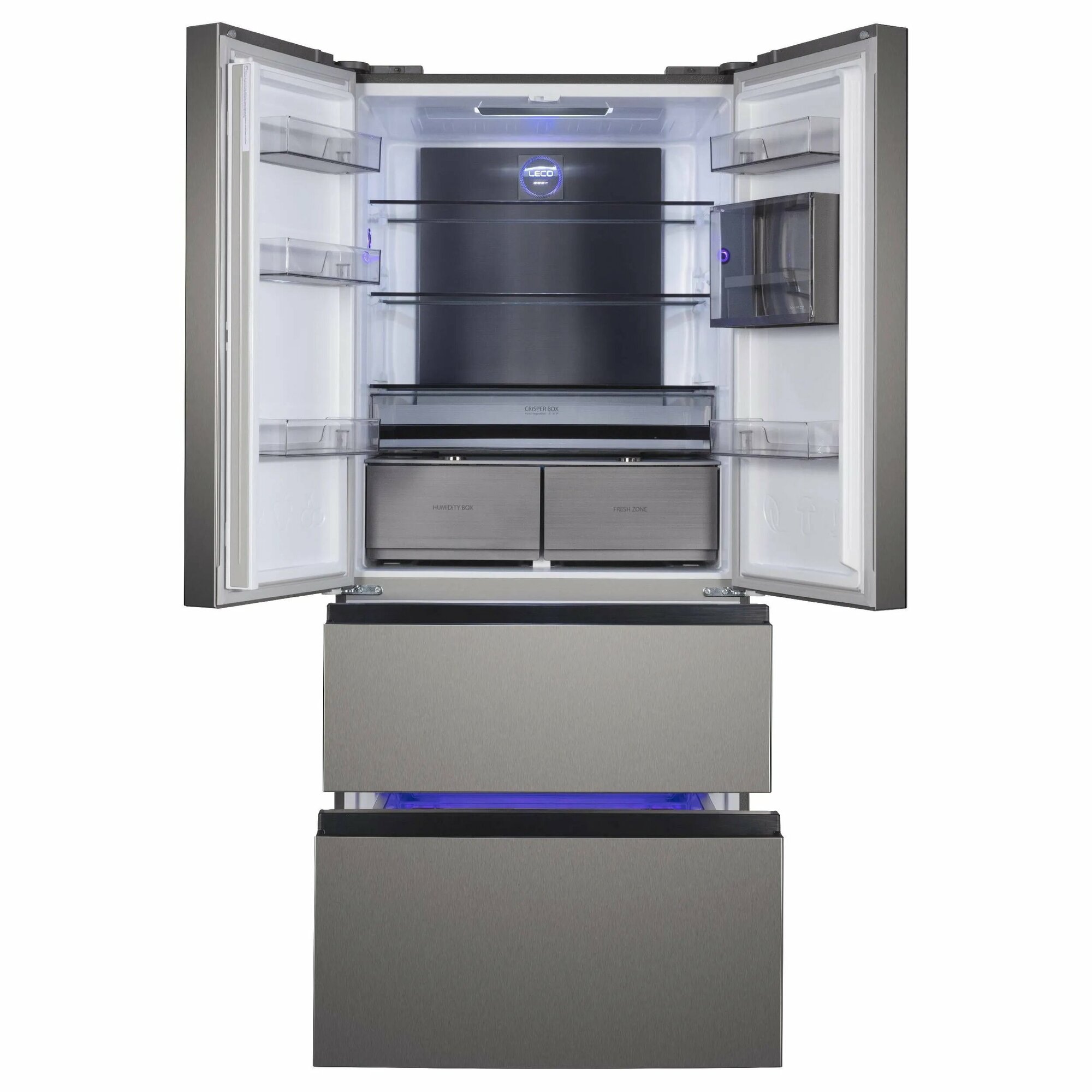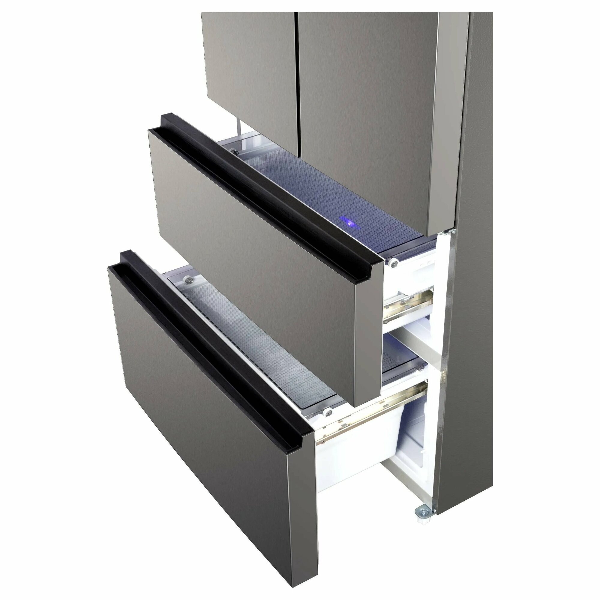 French Door, Side by Side, антибактериальное покрытие, дисплей, В стороны, Выдвижное, ЖК дисплей, Светодиодная подсветка, Скрытые ручки, регулируемые по высоте ножки