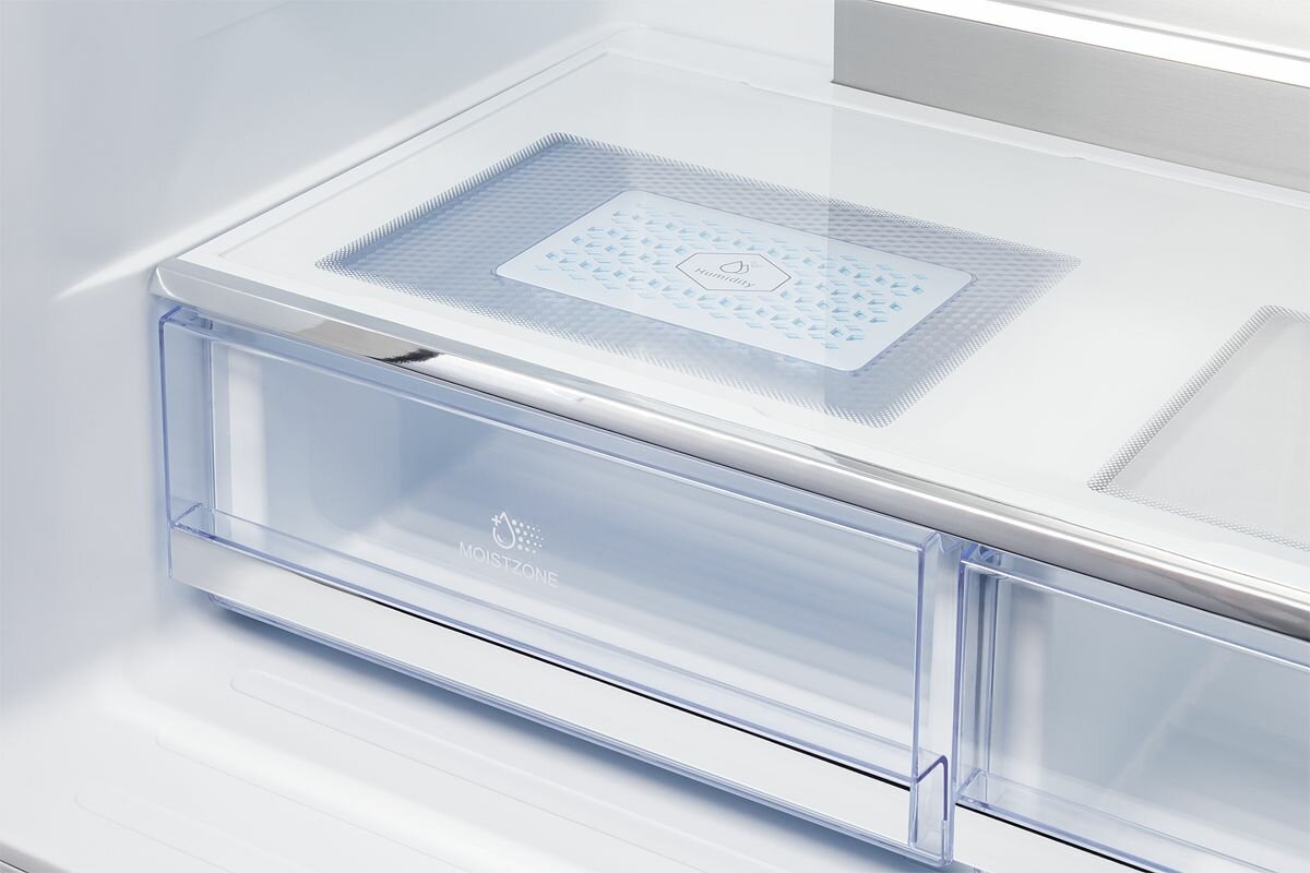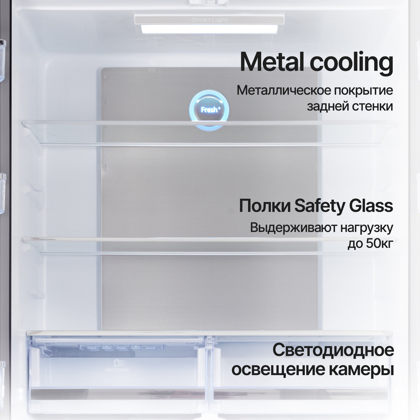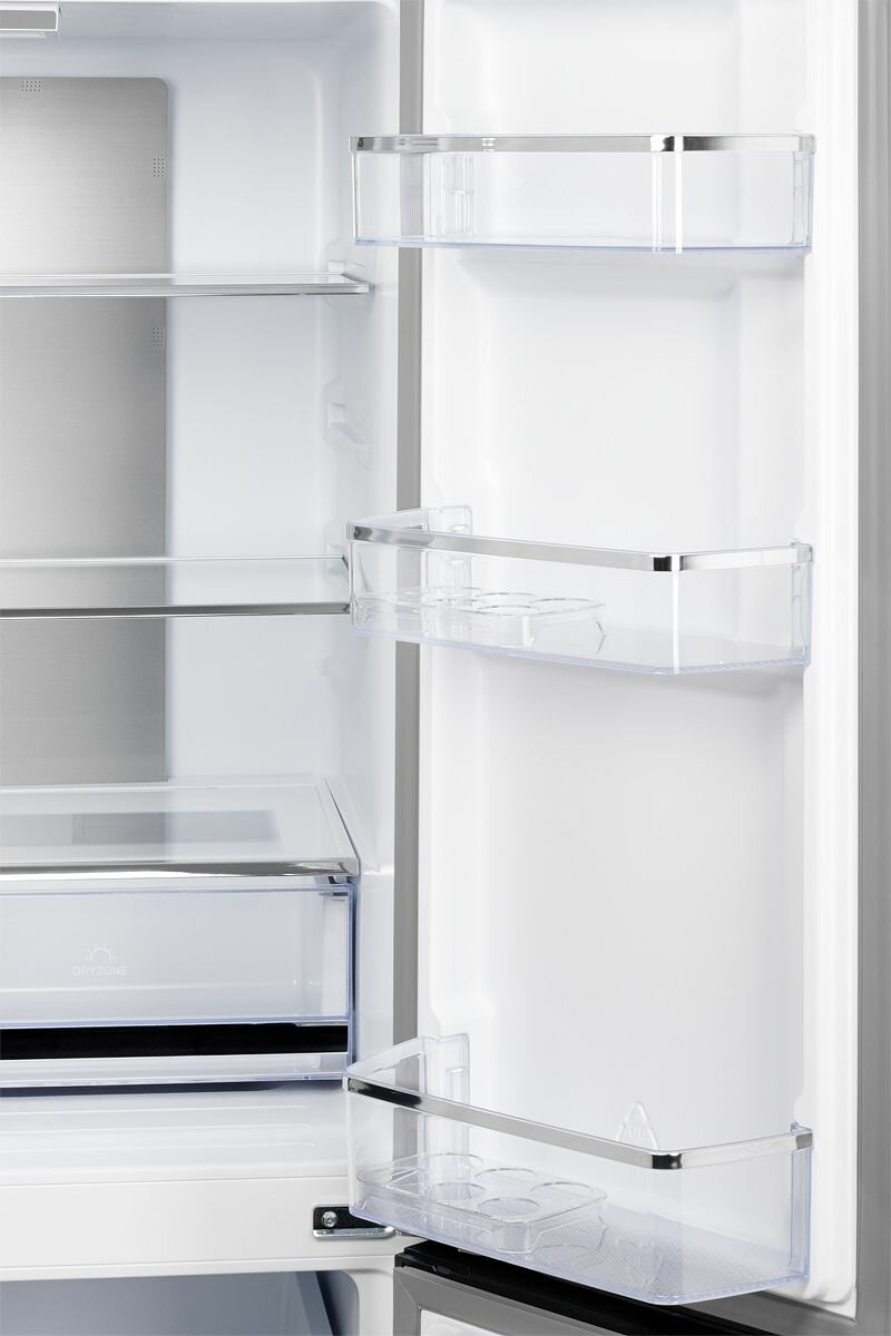 светодиодное освещение камеры, полки регулируемые по высоте (3шт.), навесные дверные полки (6шт.) , полка для яиц (2шт), коллекция Classic
