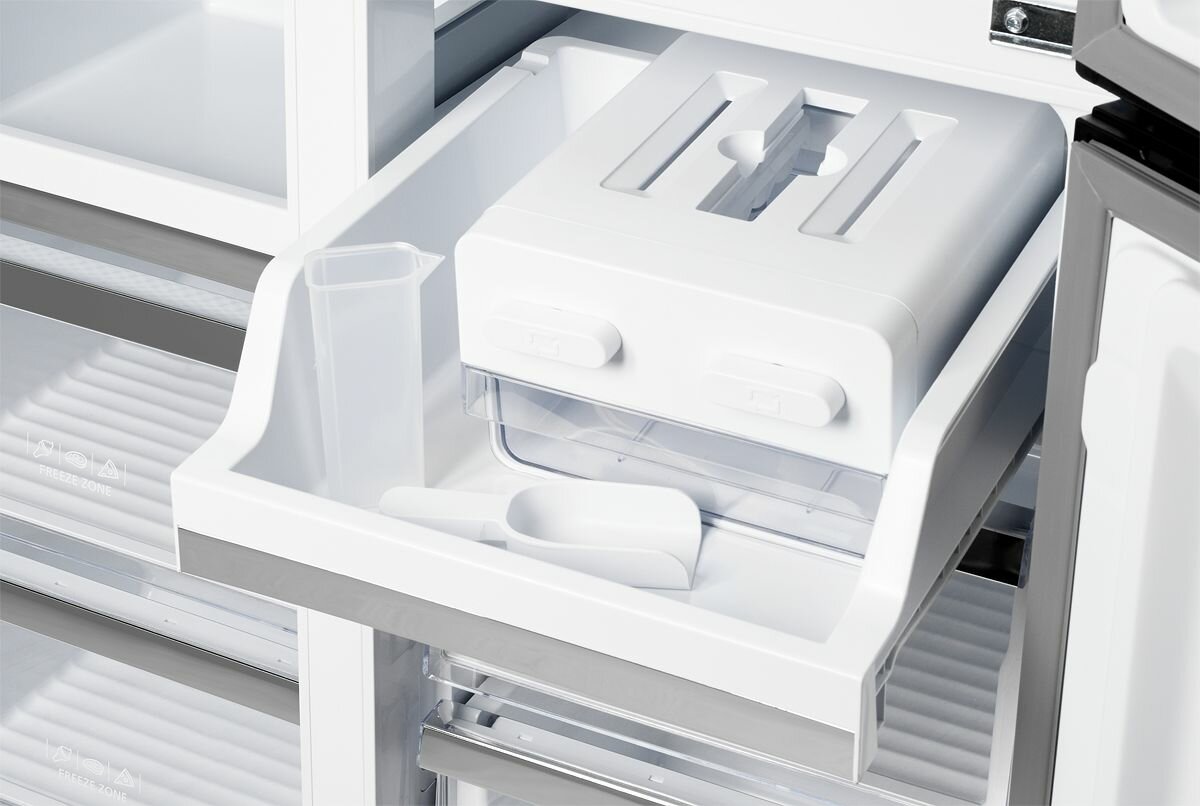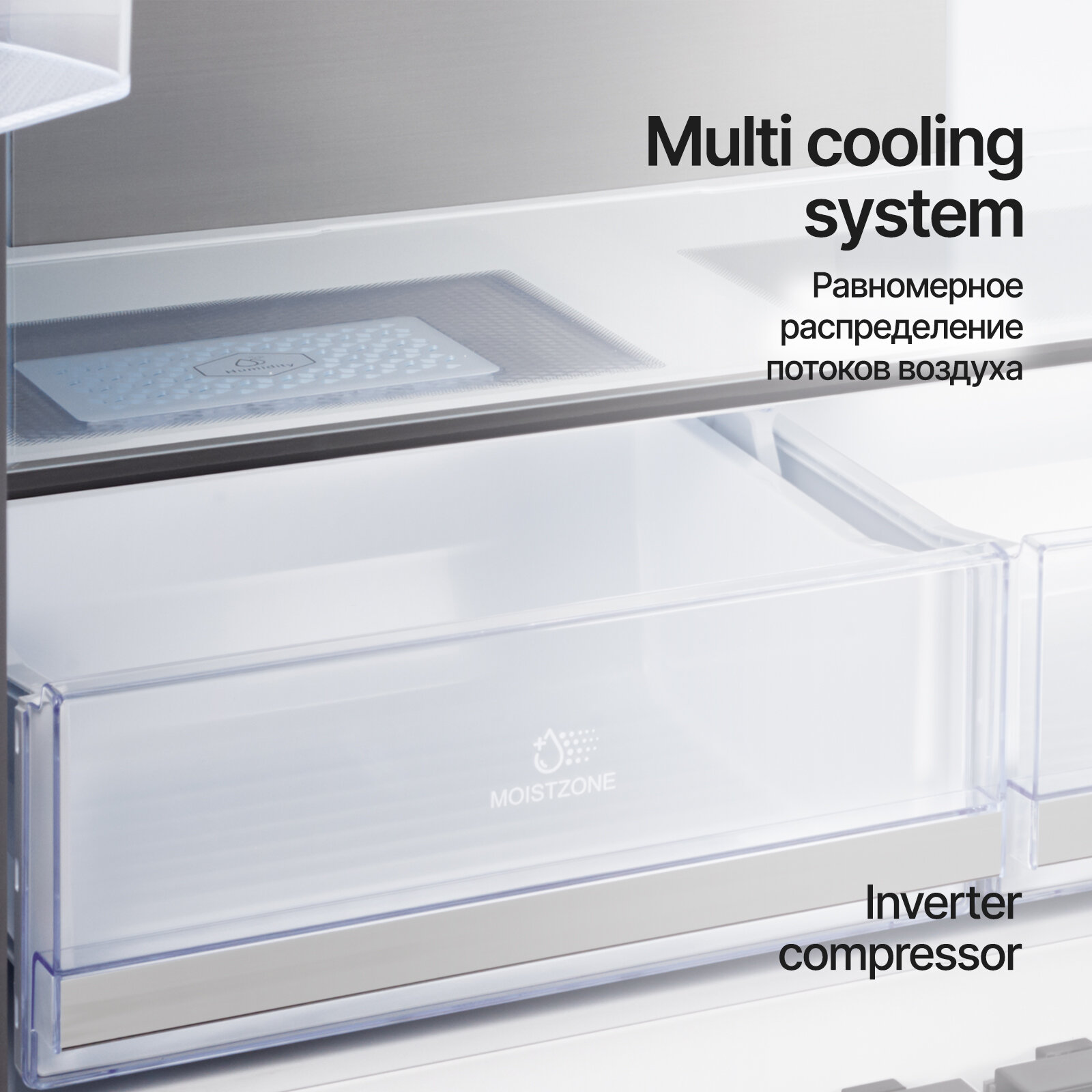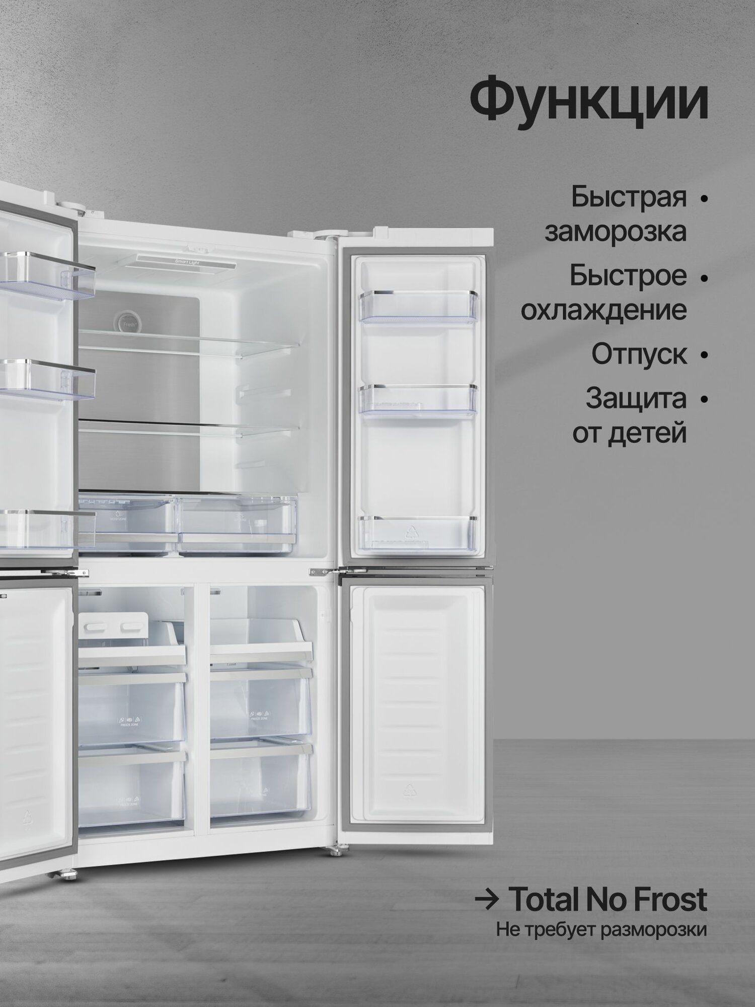светодиодное освещение камеры, полки регулируемые по высоте (3шт.), навесные дверные полки (6шт.) , полка для яиц (2шт), коллекция Classic