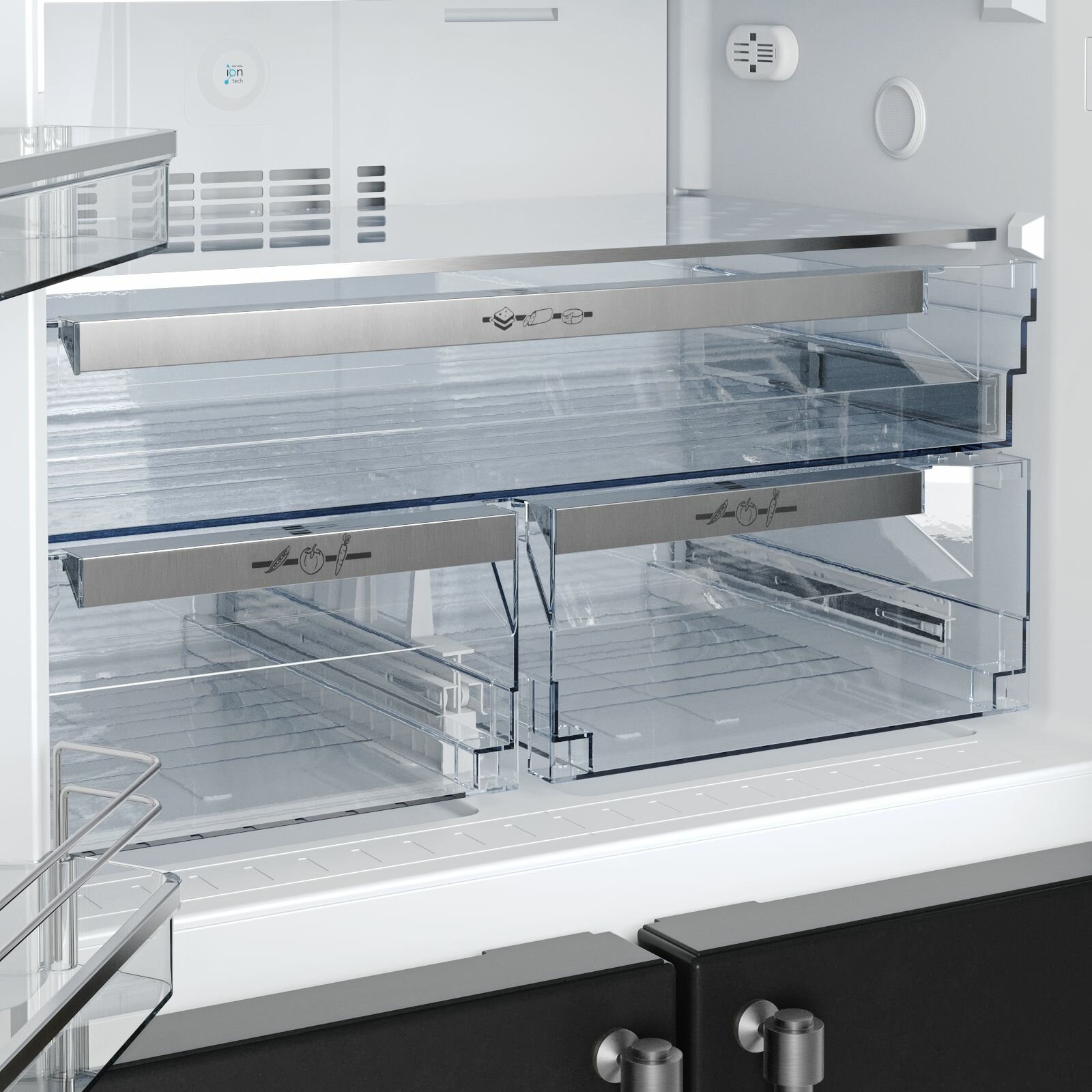 раздельная установка температуры в левой и правой морозильной камере, функция отключения экрана, ночной датчик