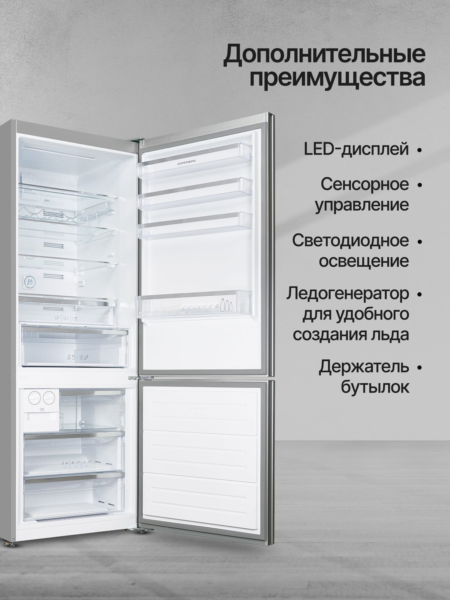 перевешиваемые двери, Автоматический доводчик двери, Влево, Вправо, Ручки легкого открывания, Светодиодная подсветка, Скрытые ручки