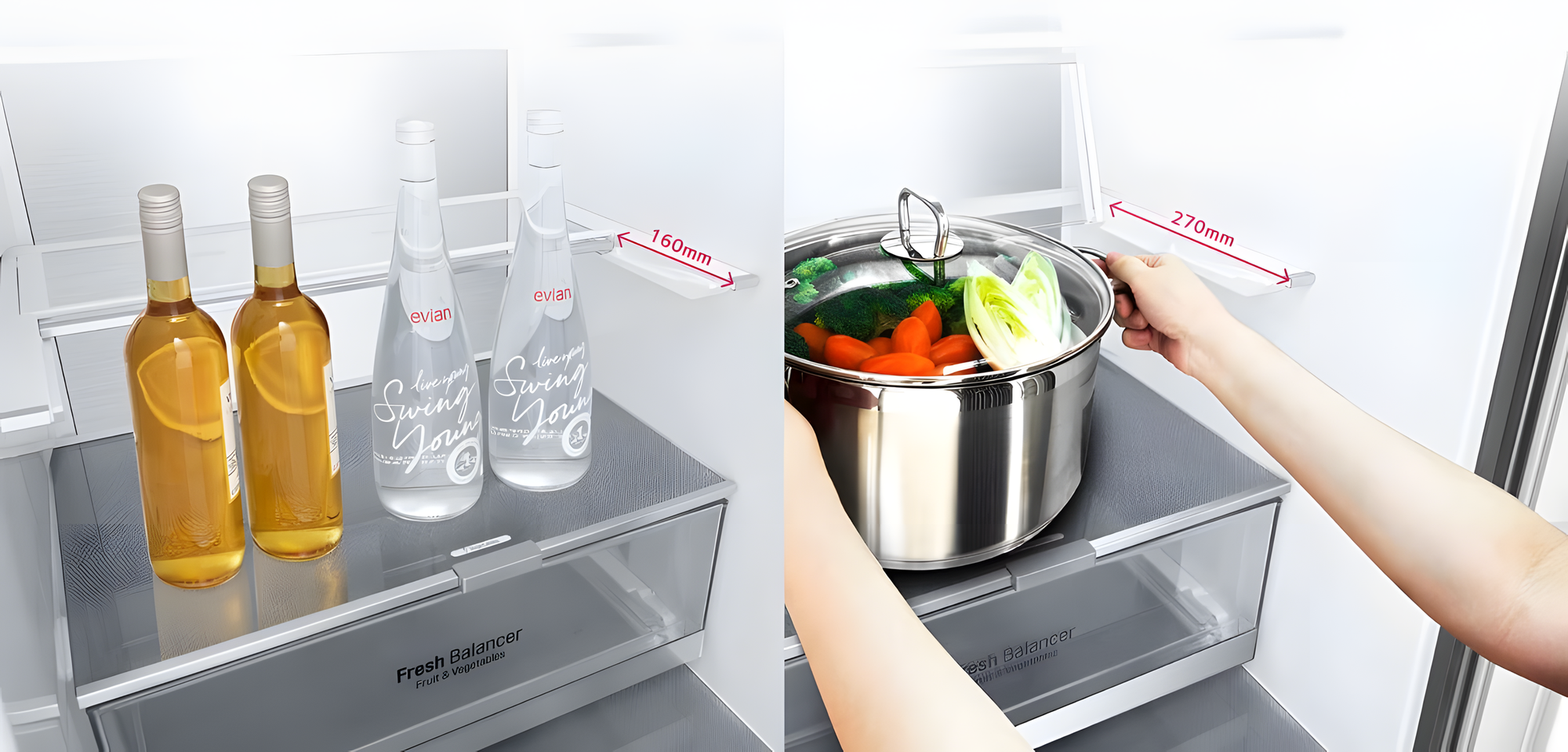 Side by Side, антибактериальное покрытие, дисплей, перевешиваемые двери, ручка с толкателем, складная полка, Вправо, ЖК дисплей, Светодиодная подсветка, Скрытые ручки, нулевой зазор дверцы, светодиодная подсветка, скрытые ручки