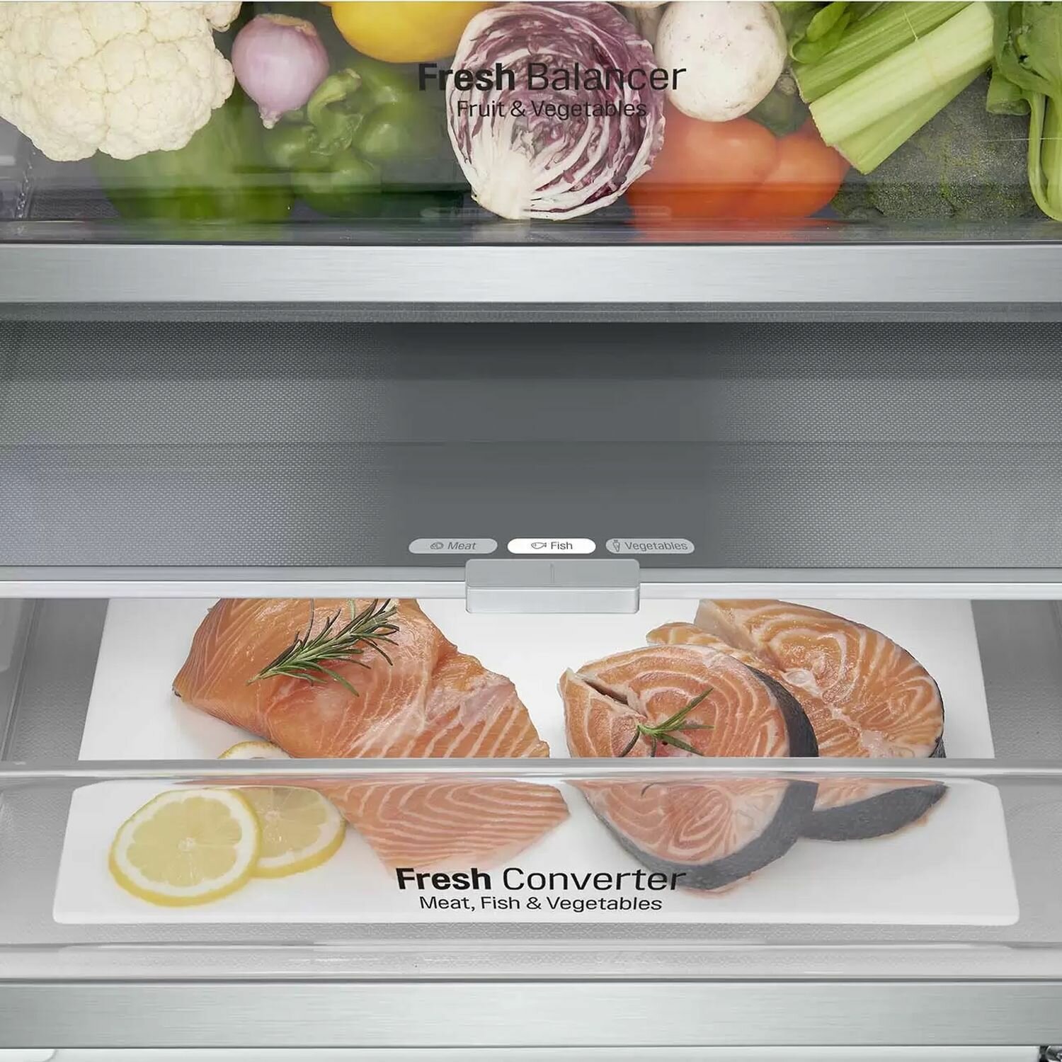 Зона FRESHConverter. Охлаждения DoorCooling+. Зона FRESHBalancer. Металлическая пластина Metal Fresh. Тип дисплея - LED. Тип управления - механический. Материал двери - металл. Открытие дверцы - налево/направо. Самодиагностика неисправностей. Отделений в морозильной камере - 1. Расположение ручек - горизонтальное. Тип ручки - внешняя. Тип освещения: LED. Освещение холодильной камеры. Подставка для яиц - в комплекте. Формочки для льда: Да. Режим энергосбережения: Да. Режим суперохлаждения: Да. Ящиков в зоне сохранения свежести: 1. Цвет ящиков зоны сохранения свежести: прозрачный. Полка для бутылок: Да. Цвет фурнитуры: серебристый. Режим суперзамораживания: Да. Установка вплотную к стене: Да. Регулировка температуры в зоне сохранения свежести: Да. Полки-разделители в морозильной камере: 3. Складных полок: 1. Контейнер для льда: Да. Разделитель морозильной камеры: Да