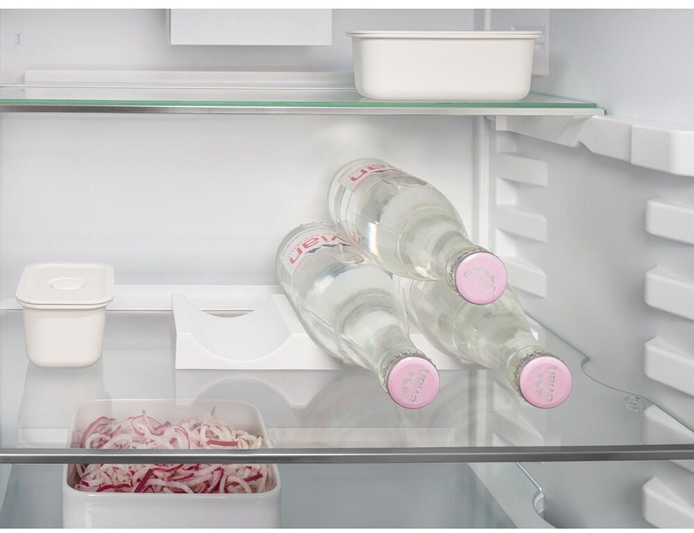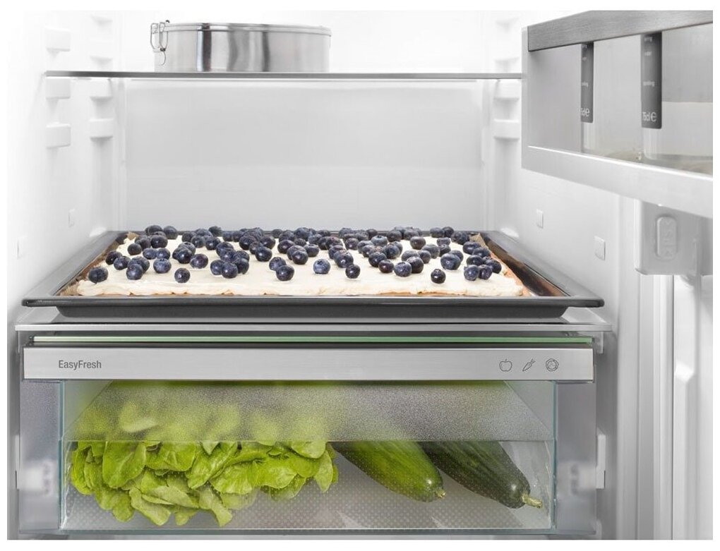 контейнер EasyFresh на направляющих, система DuoCooling, сенсорный экран, утопленная ручка, система PowerCooling, светодиодное потолочное освещение, отделения в двери, регулируемые по высоте полки на внутренней стороне двери, раздельная регулировка температуры, система EnergySaver, BottleTimer, полка для 3 бутылок, лоток для яиц, сменный дверной уплотнитель, регулируемые ножки