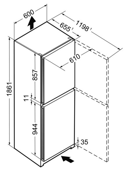 Потребление энергии за 24 часа: 0,629 кВт.ч / 24 ч, Потребляемый ток: 1,0 A 186 Вт, Высота / Ширина / Глубина (с упаковкой): 1 907,0 / 617,0 / 711,0 мм, Вес (без упаковки): 66,0 кг, Вес (с упаковкой): 71,0 кг, Автоматическая функция SuperFrost с автоматическим отключением через 65 часов (макс.), Возможность установить прибор вплотную к стене или в готовую нишу , Сменный уплотнитель двери, * Энергетическая эффективность, заявленная производителем, может быть достигнута в случае установки ограничителей на заднюю стенку прибора. Ограничители увеличивают глубину прибора на 3,5 см.