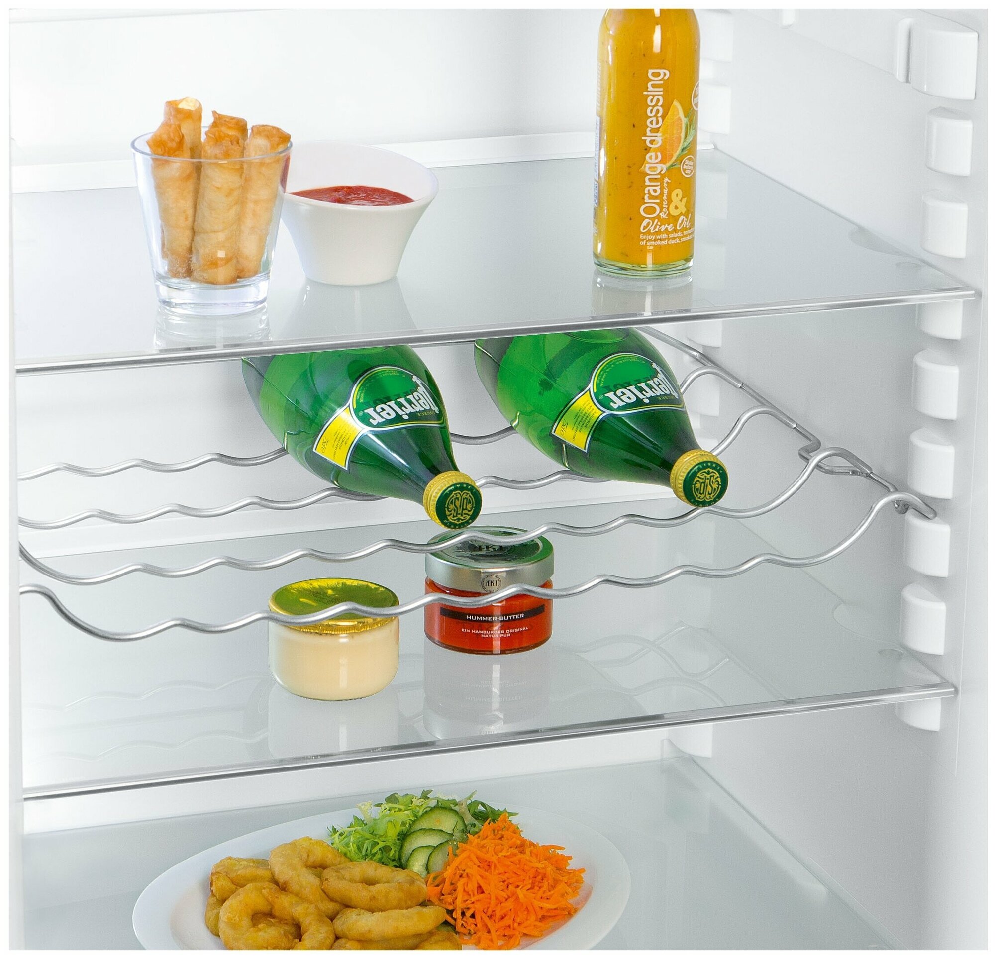 в комплекте лоток для яиц, форма для льда, полка для бутылок; нулевой зазор дверцы - возможна установка вплотную к стене или в готовую нишу