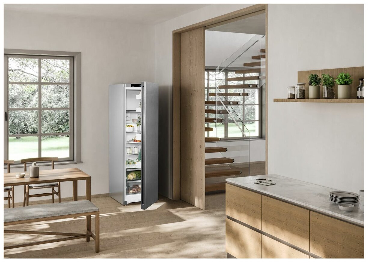 отделения в двери: полка для бутылок и консервов, регулируемые по высоте полки на внутренней стороне двери: ступенчатая регулировка, автоматическое оттаивание, односторонний свет, регулируемый диапазон температур: от +3 °C до +9 °C, климатические зоны: DrySafe / Fruit & Vegetable-Safe, фильтр FreshAir: в клапане, механизмы выдвижения ящиков: частично выдвигаемые телескопические направляющие, лоток для яиц: 10 яиц, сухая задняя панель, материал сухой задней стены: пластмасса