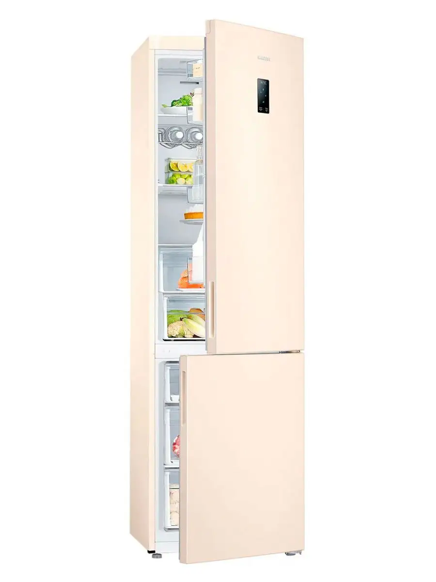 Отличный, вместительный холодильник. Работает очень тихо (покупался для квартиры-студии) и очень важно было, чтобы он не гудел как трактор. Я думала он будет просто бежевый, но чисто бежевые оказались бока холодильника, а дверцы в легких бежево- перламутровых разводах (мне очень понравился дизайн). А Самый главный плюс, что успела купить его по акции за 39 т. р.