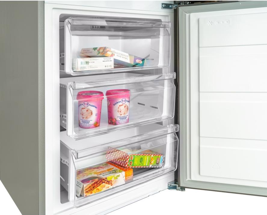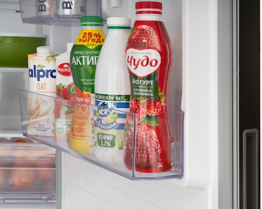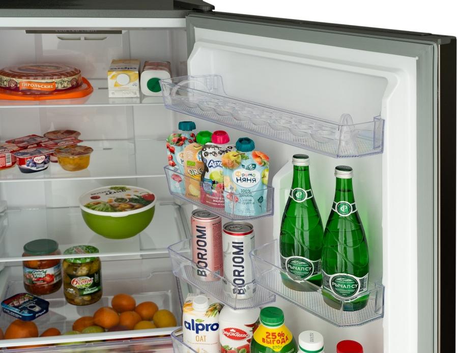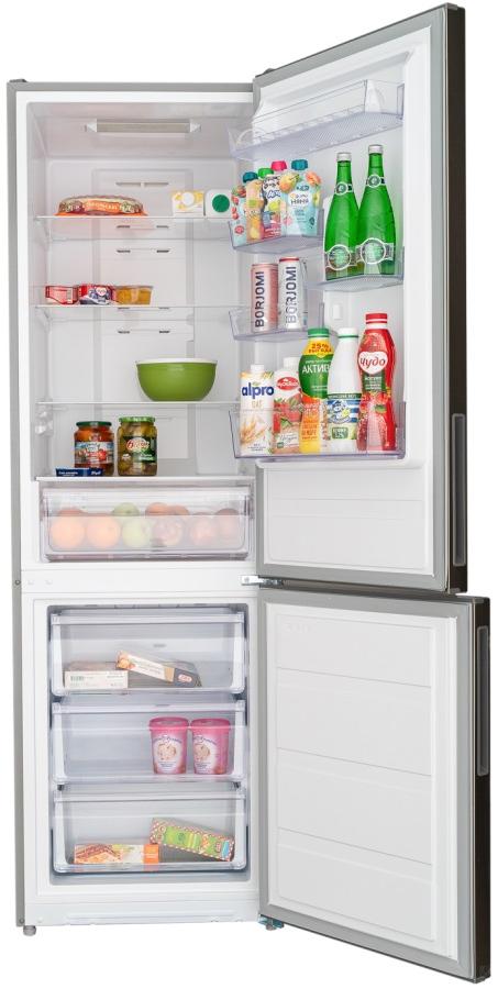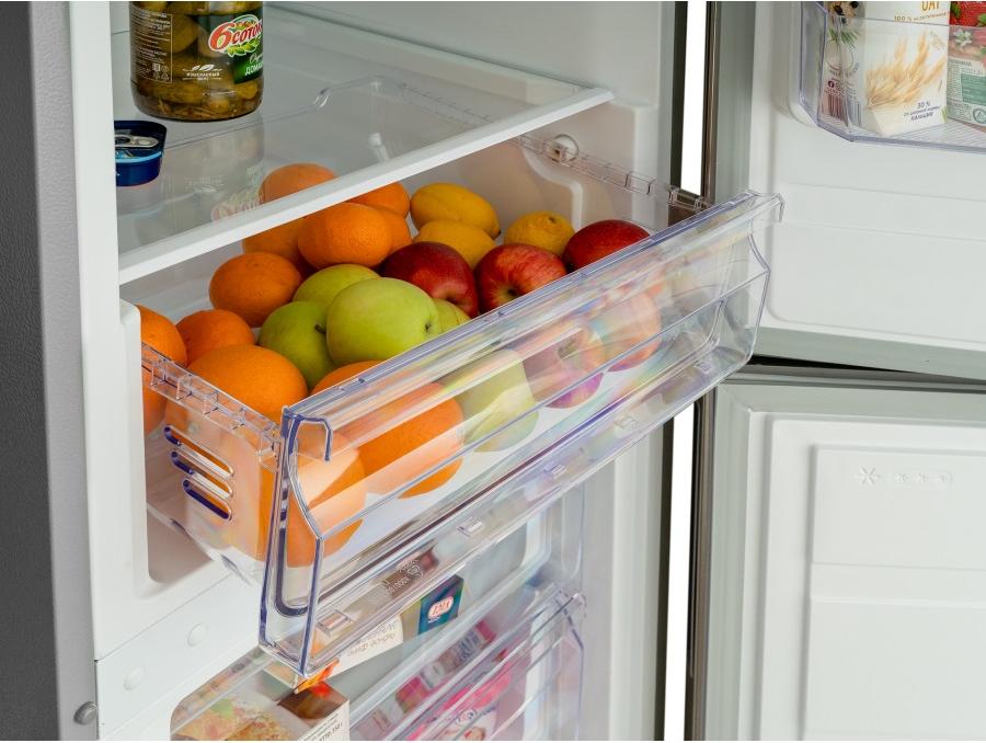 холодильник с морозильником Двухкамерный холодильник с морозильником Двухкамерные холодильники наиболее востребованы благодаря своей универсальности: они подходят для как для кратковременного, так идля долговременного хранения продуктов. Эти устройства чаще всего имеют две дверцы; включают холодильную камеру, позволяющую хранить продукты при температуре от0до+5...+8градусов, иморозильник, где продукты хранятся при температуре −18 градусов или еще более низкой. Две дверцы обеспечивают независимость камер, минимум потерь тепла, аследовательно, иэкономичность подобных приборов. Порасположению морозильной камеры принято выделять холодильники европейского типа сморозильной камерой снизу, азиатского типа сморозильником сверху ибольшие приборы Side-by-Side, укоторых холодильная иморозильная камеры расположены рядом друг сдругом. Двухкамерные модели могут иметь один или два компрессораи, соответственно, один или два контура охлаждения. Размерный ряд этих устройств очень широк: вчастности, общий объем двухкамерного холодильника может составлять до1000 иболее литров, аобъем морозильной камеры— до700литров. Габаритные размеры холодильников также варьируются всамом широком диапазоне: например, высота ихможет достигать 220см, аширина— 150см. Одна изглавных характеристик двухкамерных холодильников— способ ихразмораживания. Всовременных моделях используется самое простое ручное размораживание, атакже более совершенные системы NoFrost, капельной иавтоматической разморозки. Производители выпускают устройства, оснащенные интеллектуальной электронной системой управления сраздельной регулировкой температуры вкамерах сточностью до1градуса. Современным устройствам присваивается класс энергопотребления может достигатьА+++, ауровень шума уних непревышает 35-38дБ.