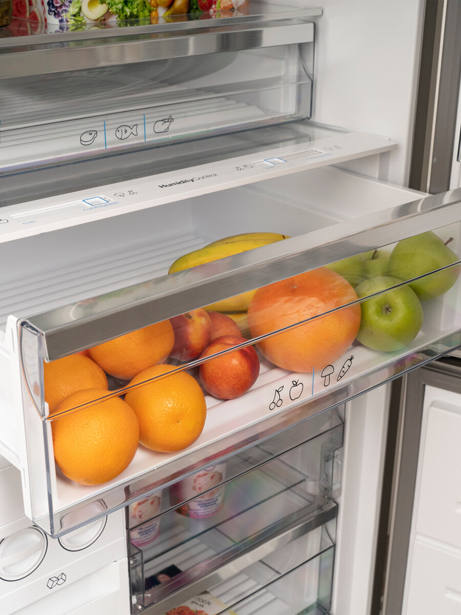 защита от детей, льдогенератор, система контроля влажности, Full No Frost, Антибактериальное покрытие камеры, Дисплей, Зона свежести, Светодиодная подсветка, Скрытые ручки, Суперзаморозка, Суперохлаждение