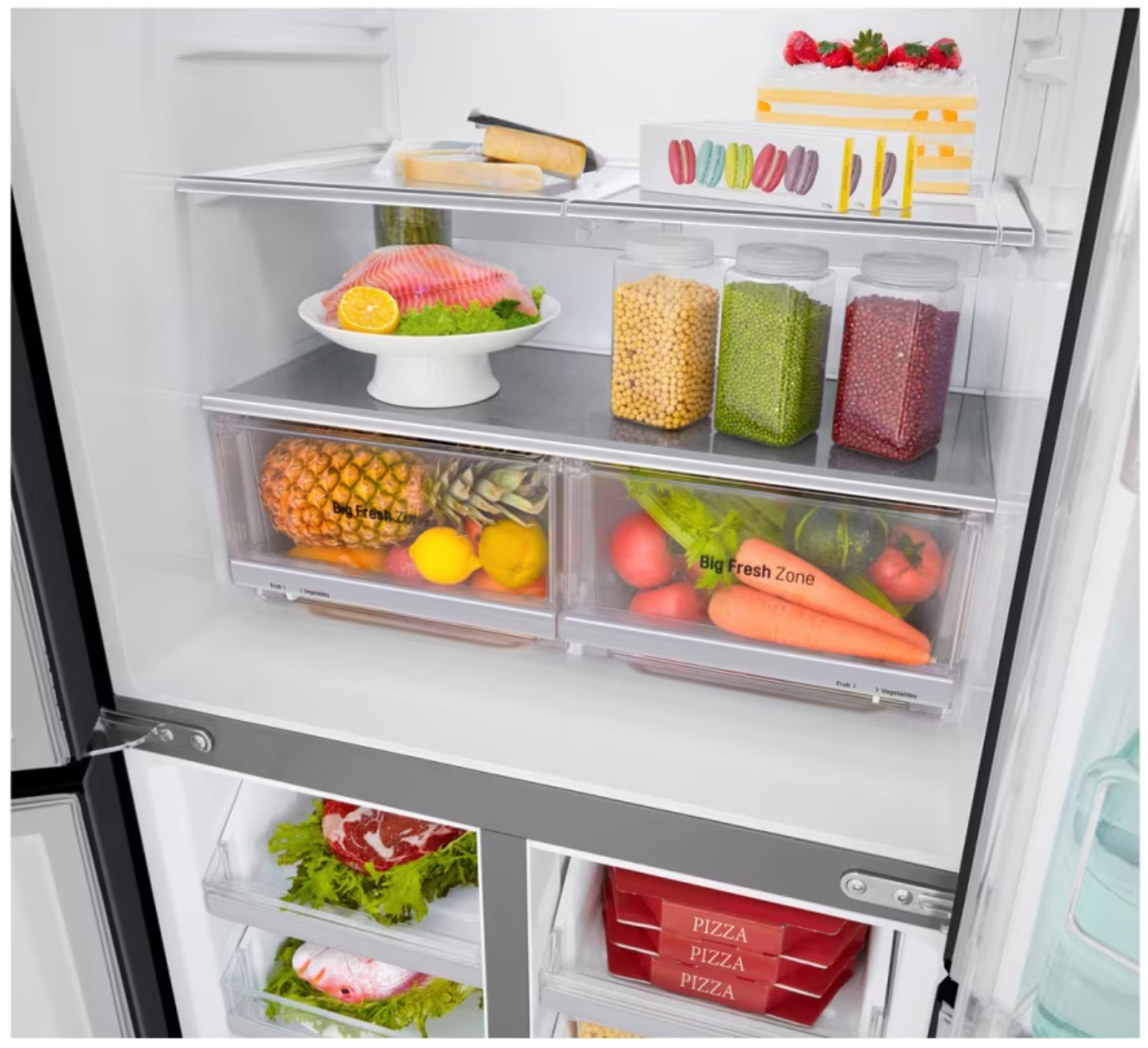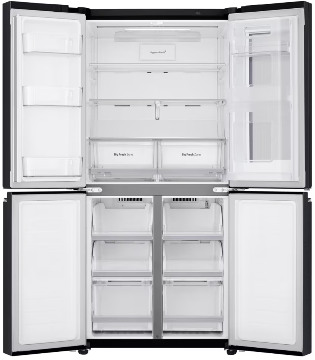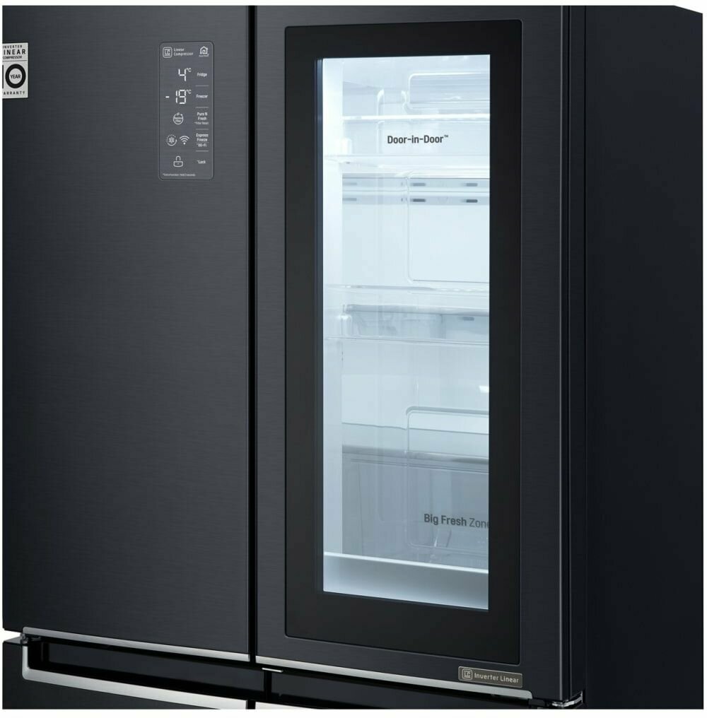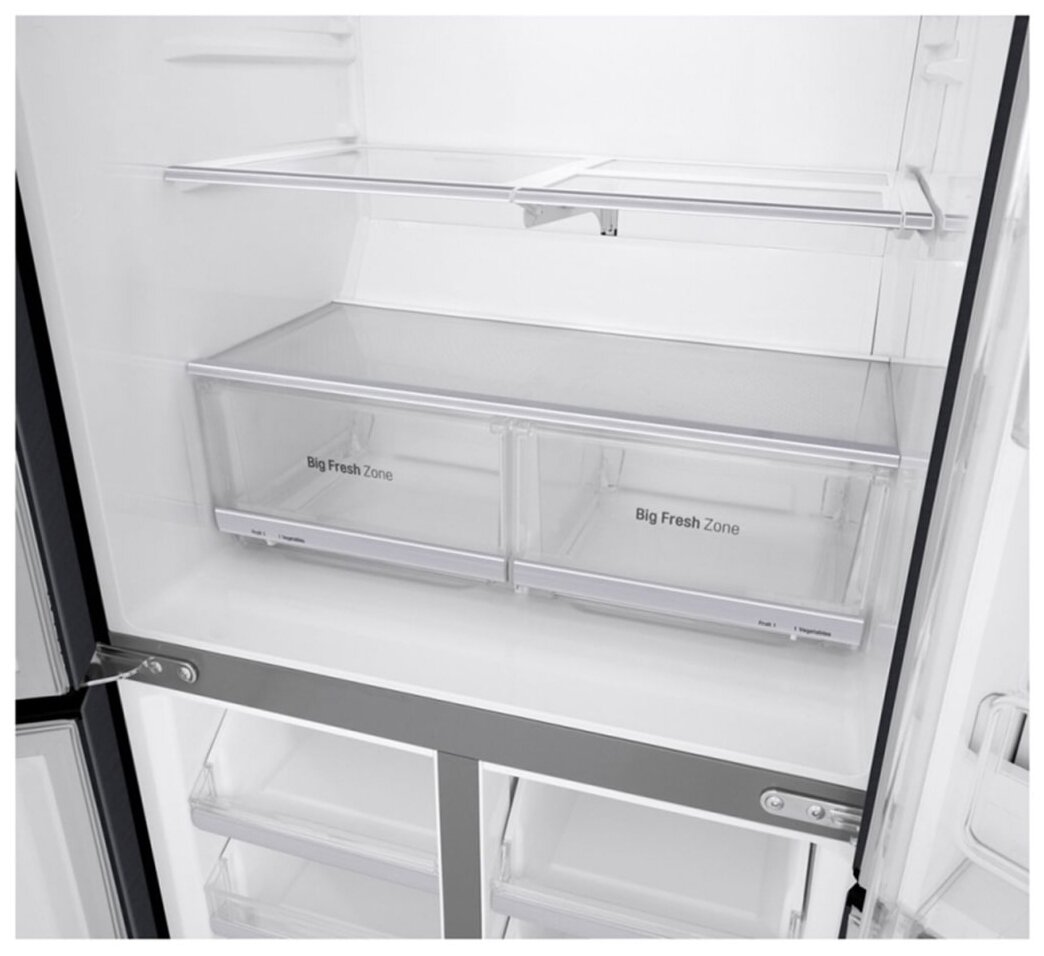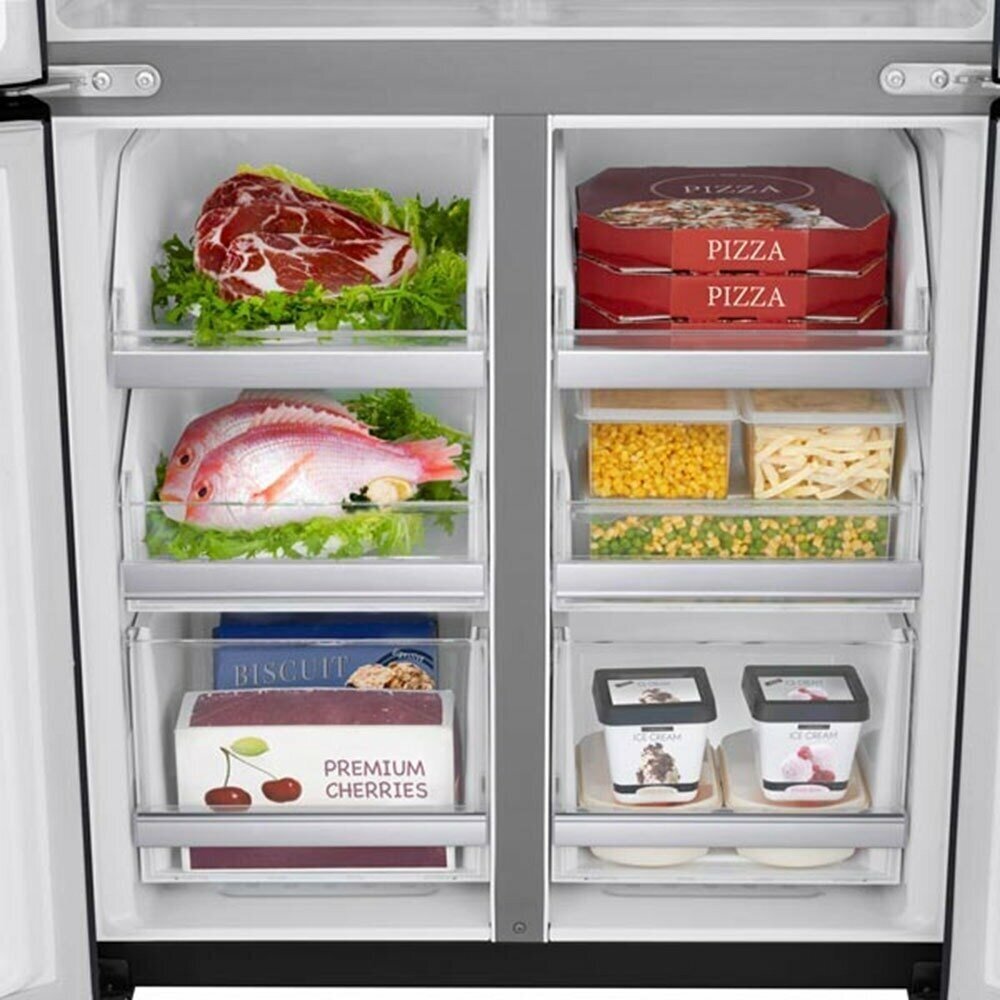 French Door, Side by Side, антибактериальное покрытие, дисплей, перевешиваемые двери, складная полка, В стороны, Светодиодная подсветка, выдвижное отделение для овощей, освещение морозильной камеры, освещение холодильной камеры, угольный фильтр, электронное управление зоной сохранения свежести