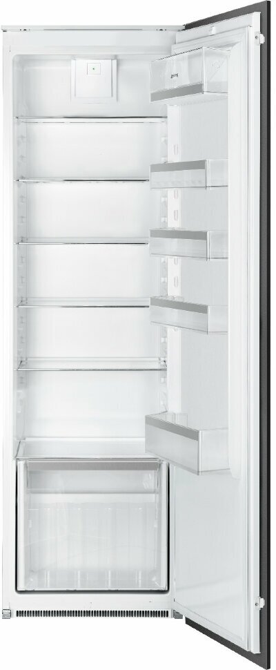 полок в холодильной камере - 6, полок на двери холодильной камеры - 5, пластик, ящиков в отделении для овощей - 1, тип компрессора - стандартный, материал двери - металл, открытие дверцы - направо, тип освещения - LED, полок, регулируемых по высоте - 5, подставка для яиц