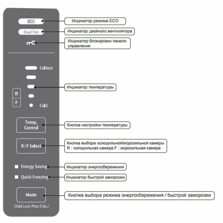 индикация температуры, система контроля влажности, Full No Frost, Дисплей